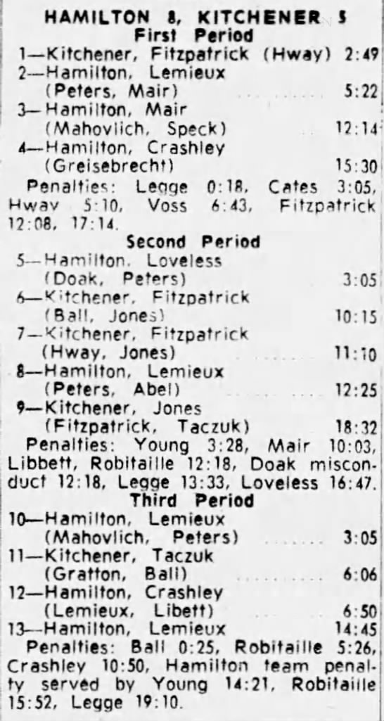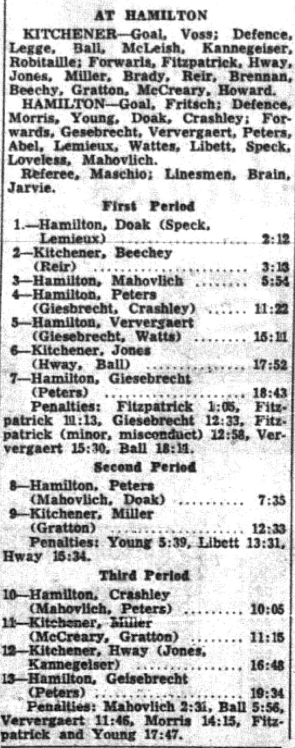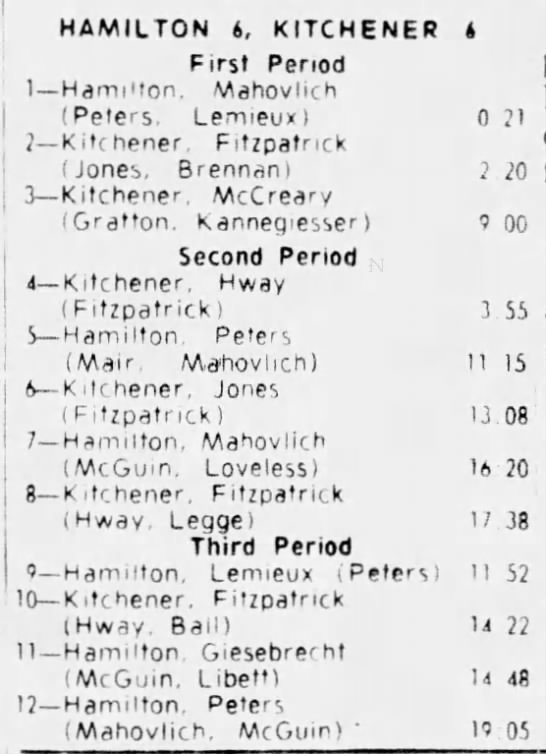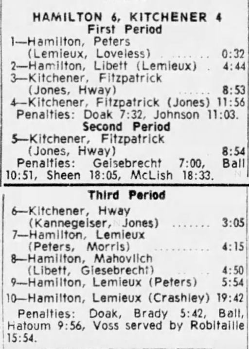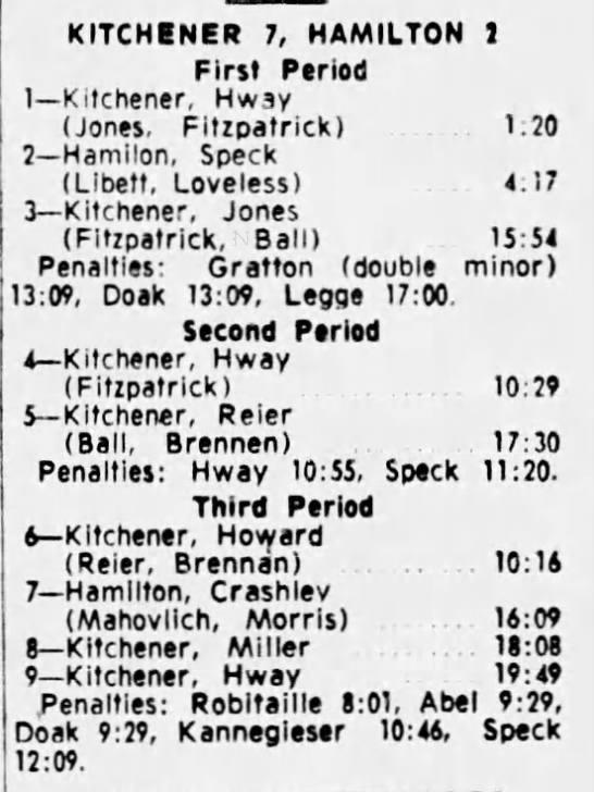 October 25 1964- Hamilton @ Kitchener (8-3 Kitchener)