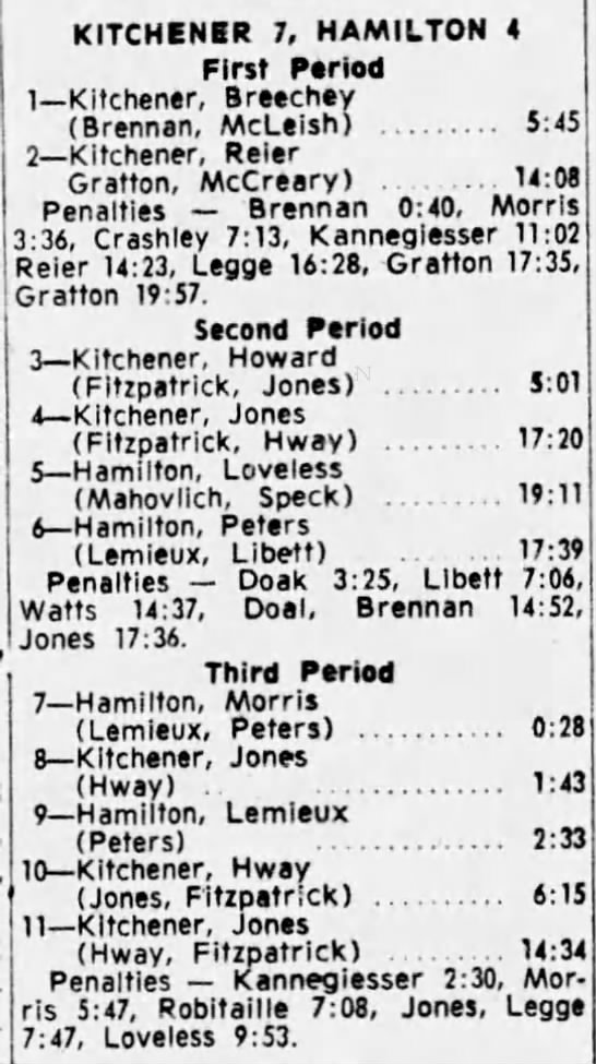 January 2 1965- Kitchener @ Hamilton