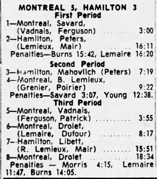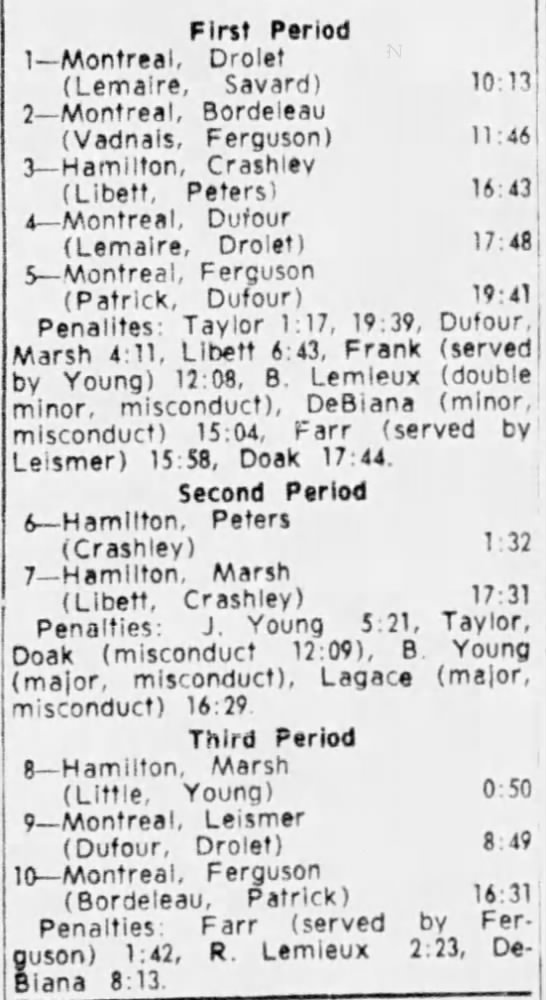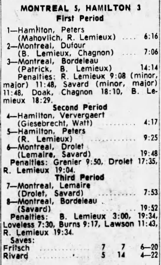 March 4 1965- Montreal @ Hamilton (7-3 Montreal)