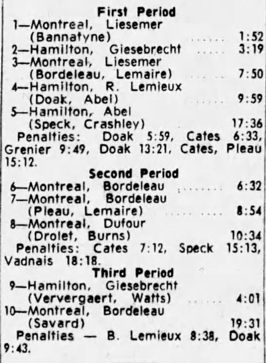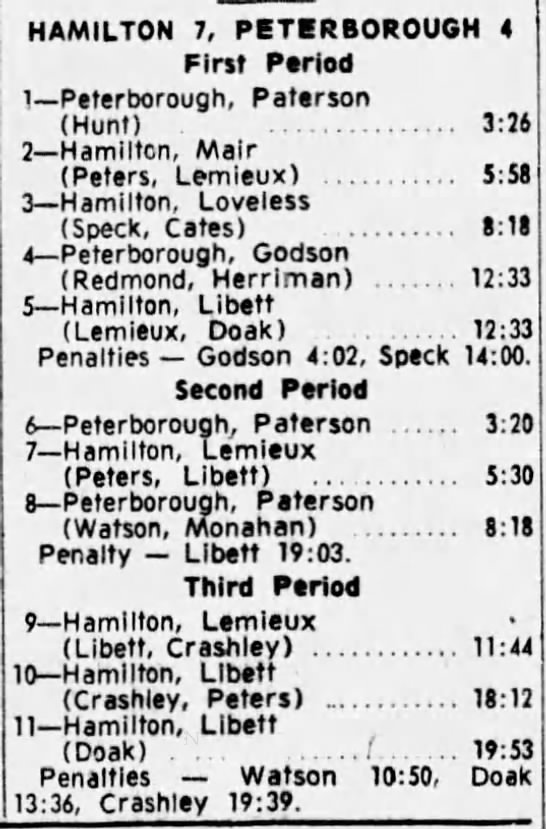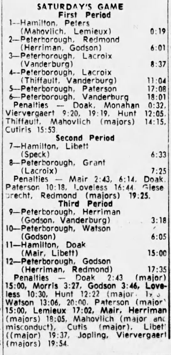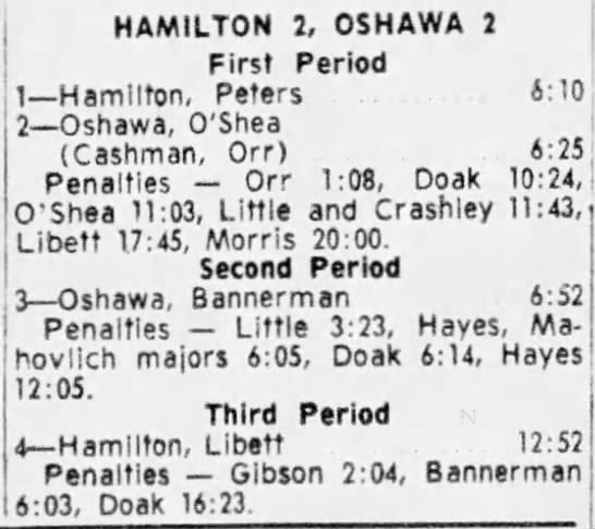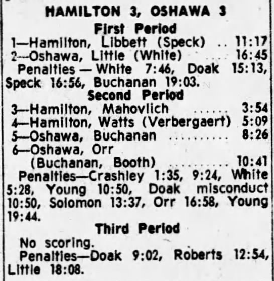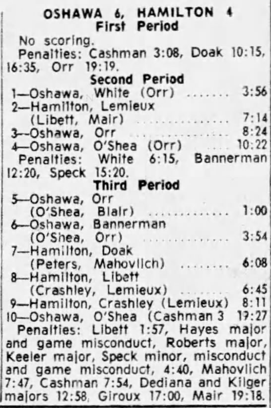 February 9 1965- Hamilton @ Oshawa (9-3 Oshawa)