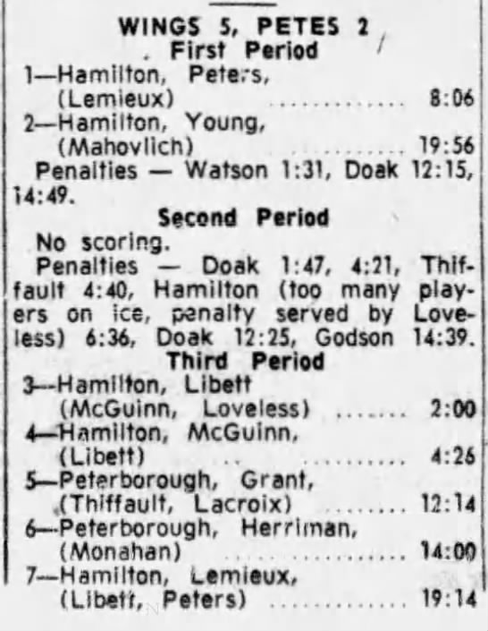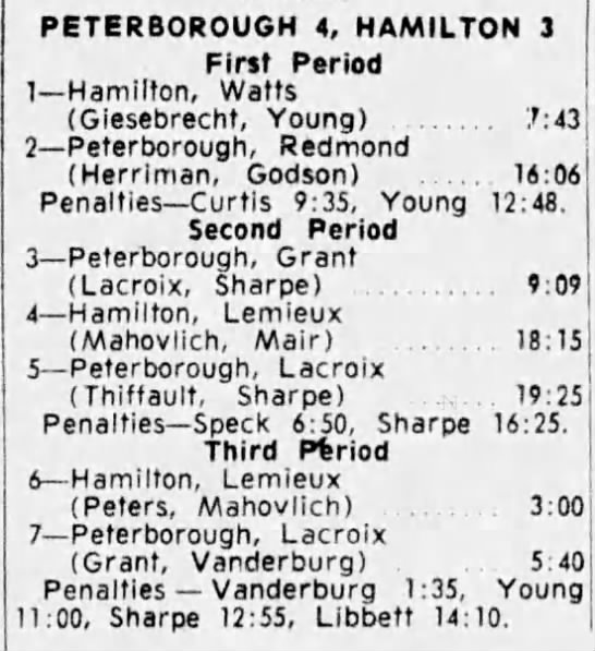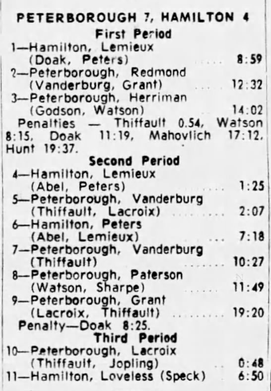 February 7 1965- Peterborough @ Hamilton