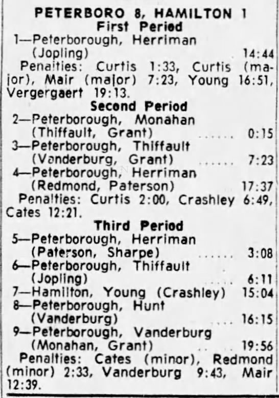 February 20 1965- Peterborough @ Hamilton