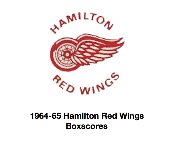 Here are the boxscores from the 1964-65 Hamilton Red Wings season. Most boxscores from that season are here (45/56 boxscores). If you have any of the games that are missing, please send them my way.
