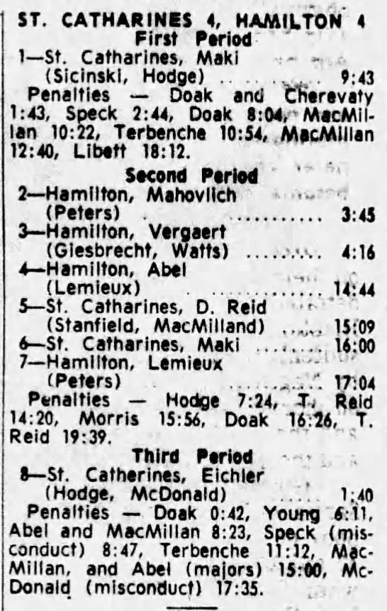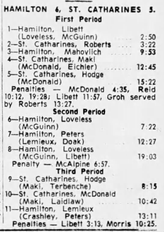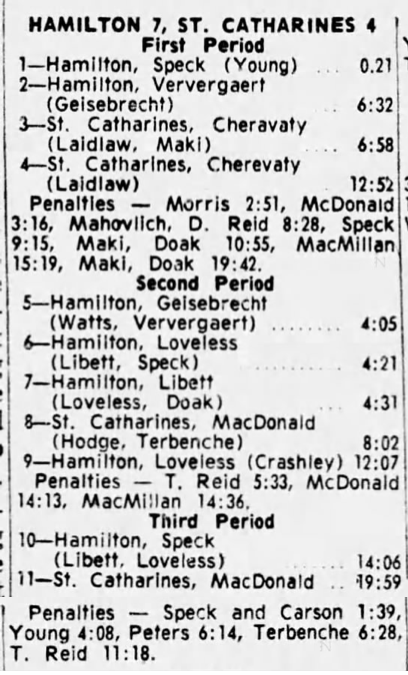February 4 1965- St. Catharines @ Hamilton (11-10 Hamilton)