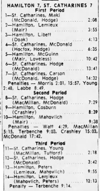 January 28 1965- St. Catharines @ Hamilton (6-6 Tie)