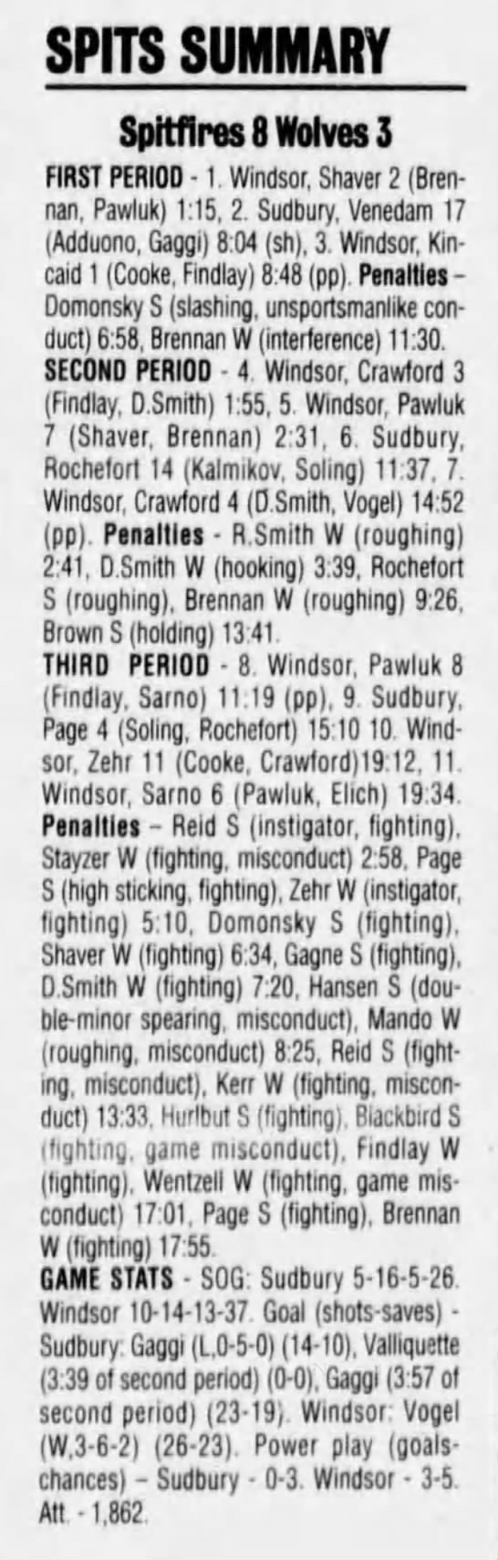 January 10 1997- Windsor @ Sudbury (5-3 Windsor)