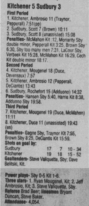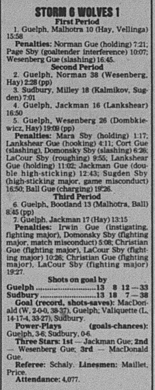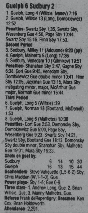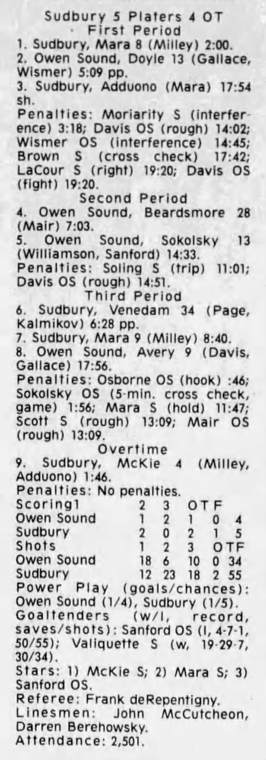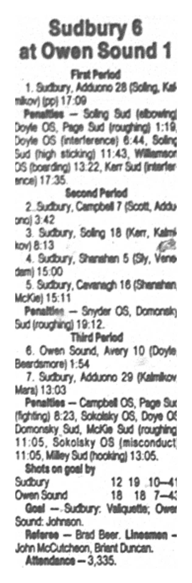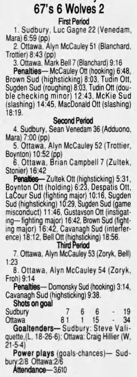 October 19 1996- Sudbury @ Owen Sound (6-3 Owen Sound)