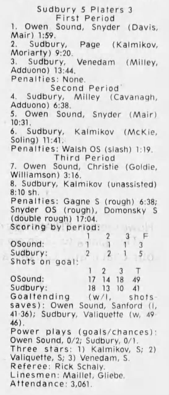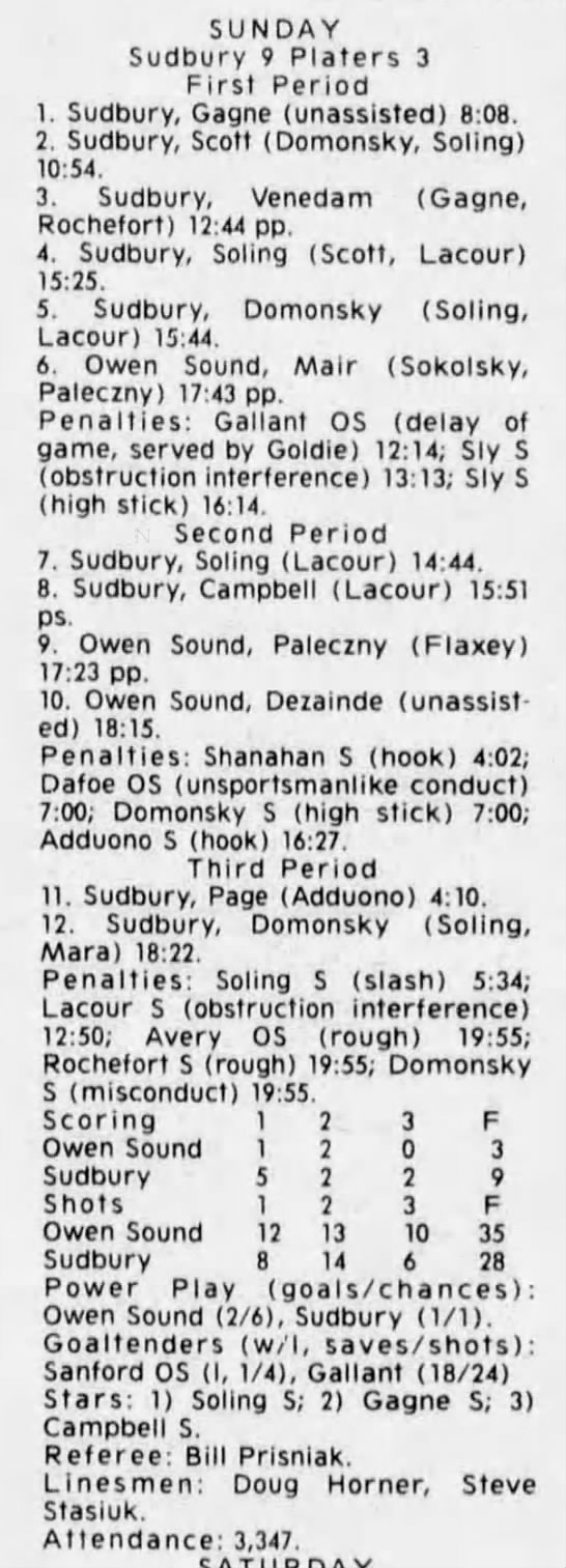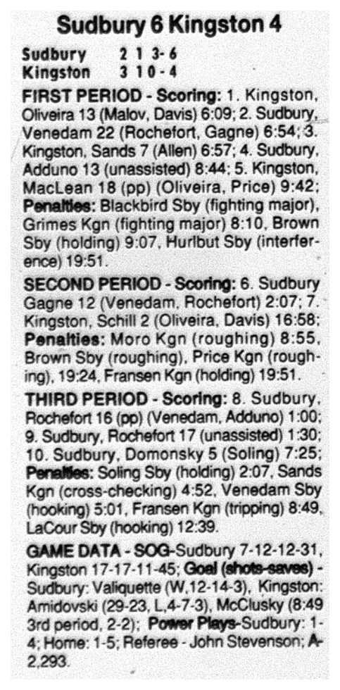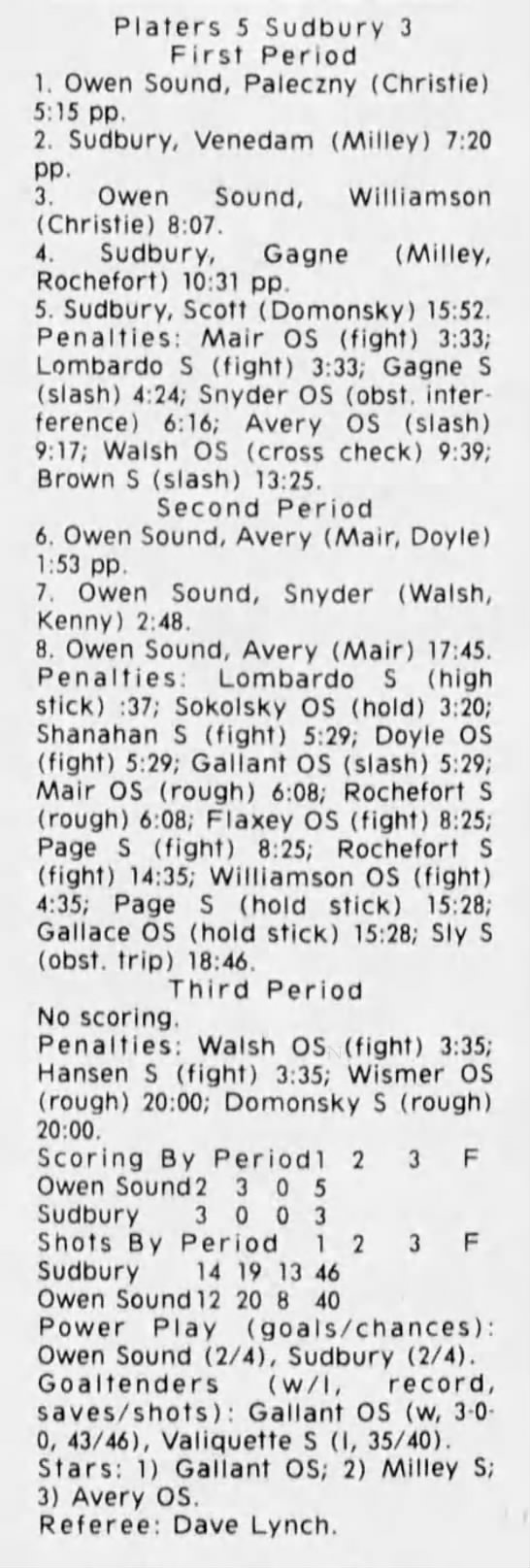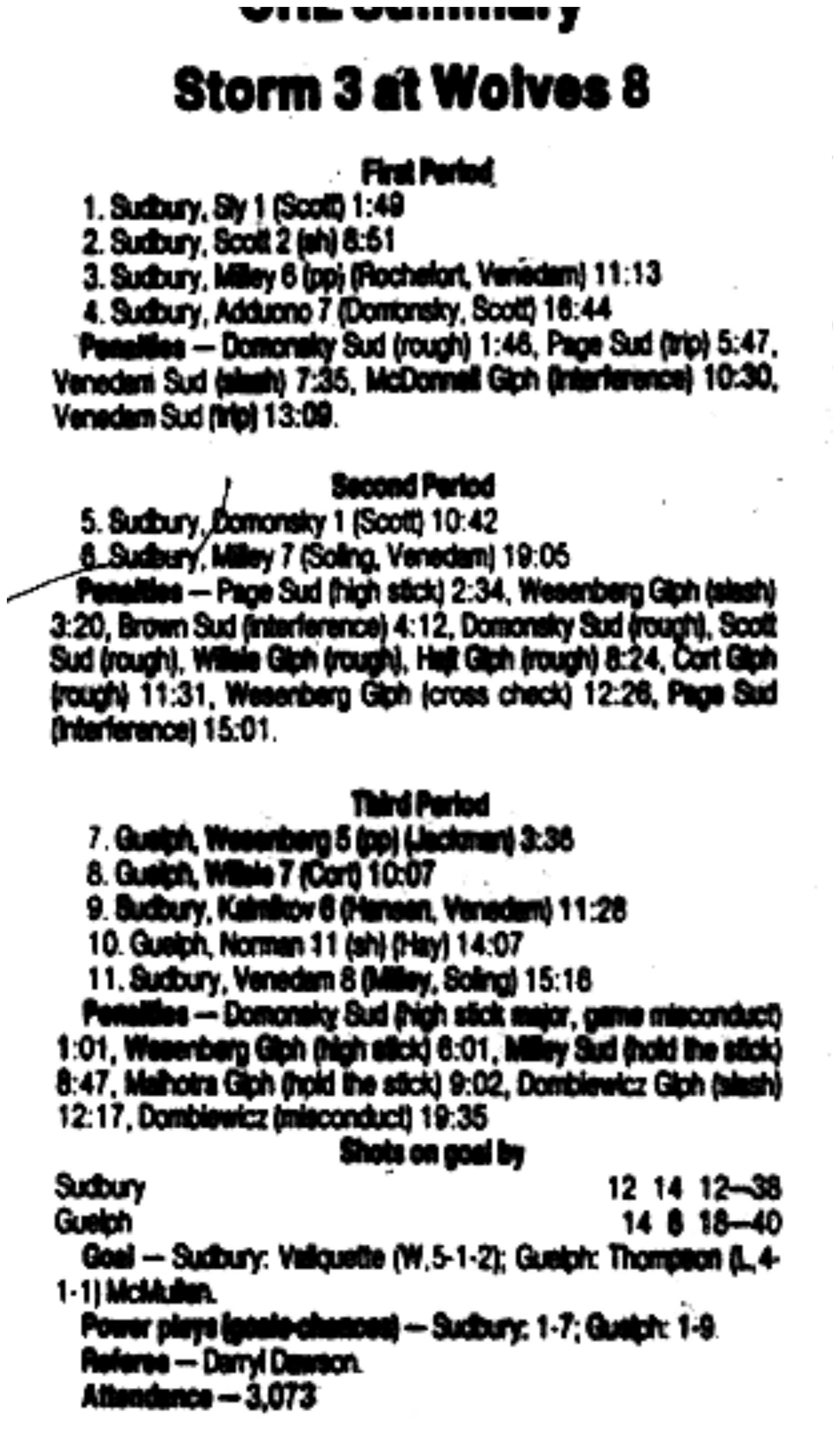 October 19 1996- Sudbury @ Owen Sound (6-3 Owen Sound)