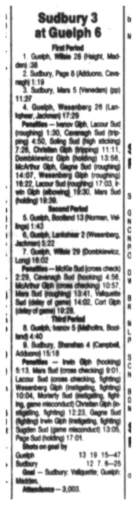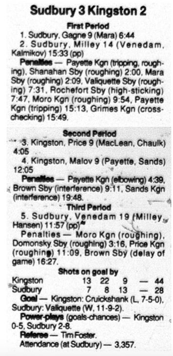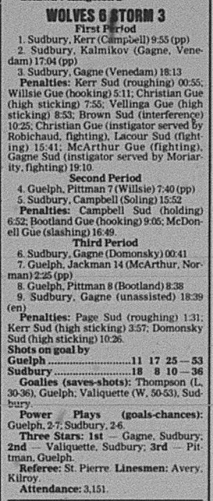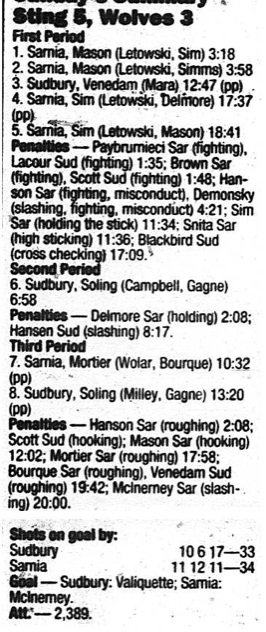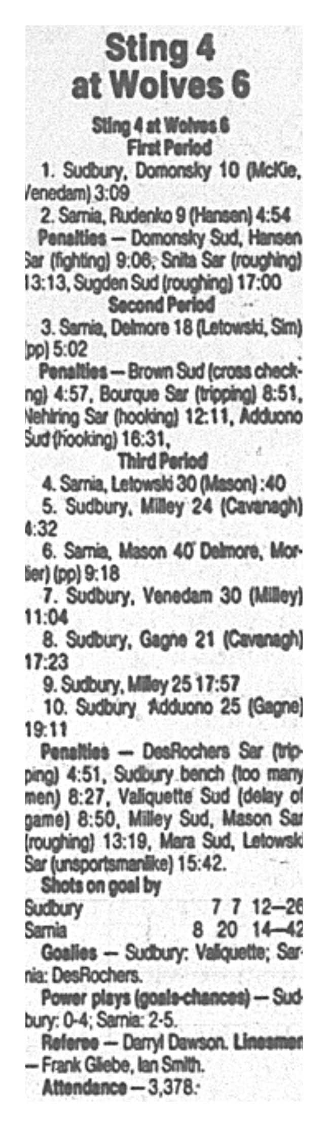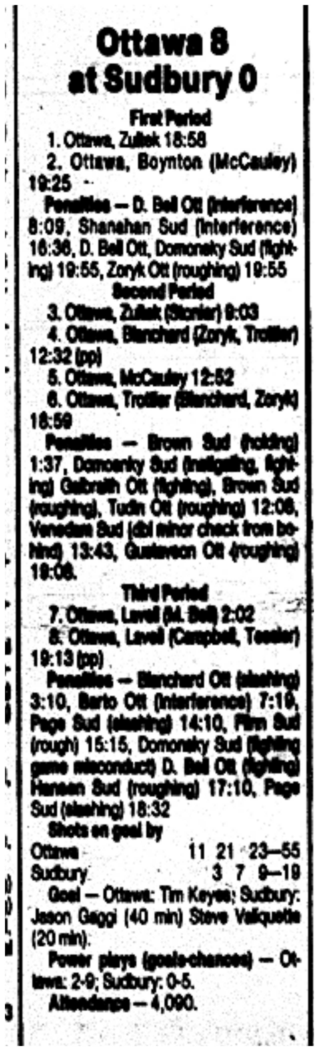 September 27 1996- North Bay @ Sudbury (10-4 Sudbury)