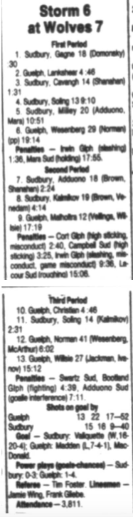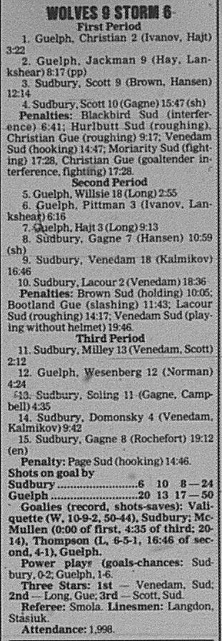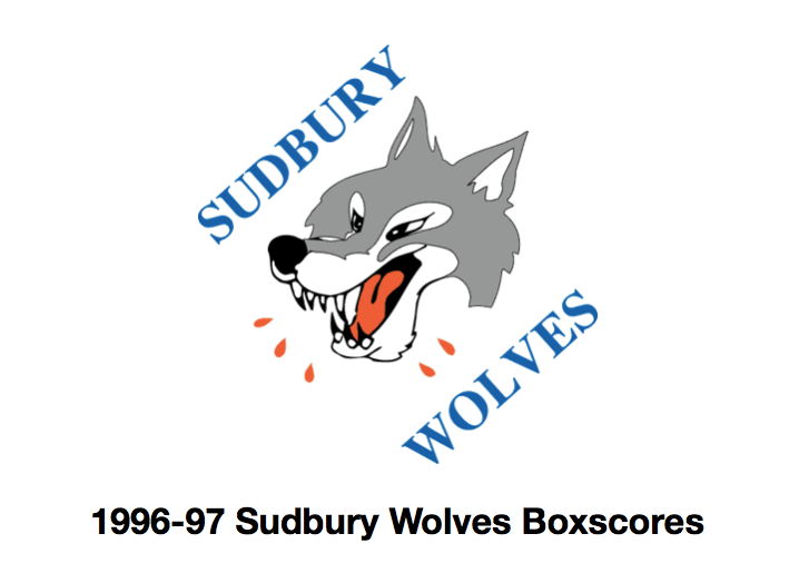 Here are the boxscores from the 1996-97 Sudbury Wolves season. There are some that are missing, but most are here (51/66 boxscores). If you have any of the games that are missing, please send them my way.