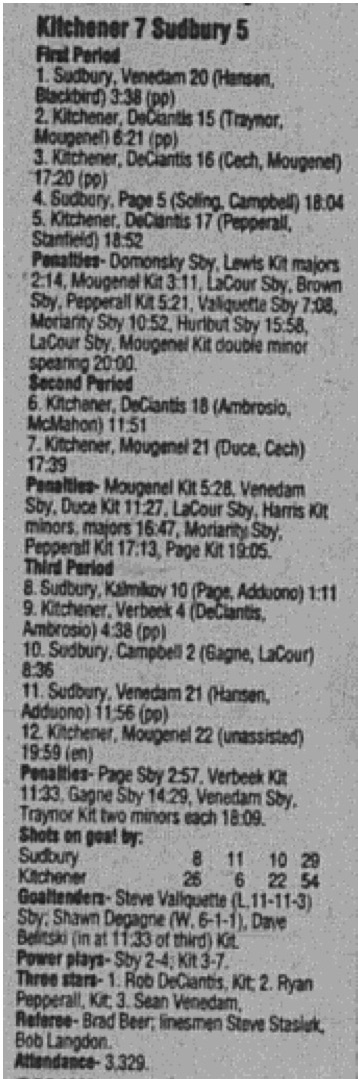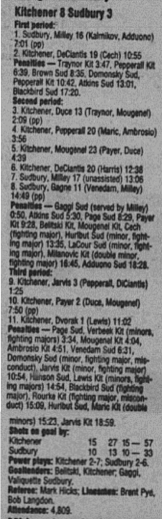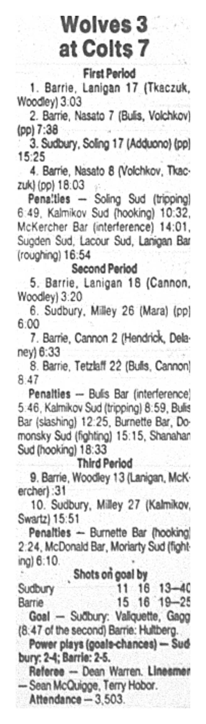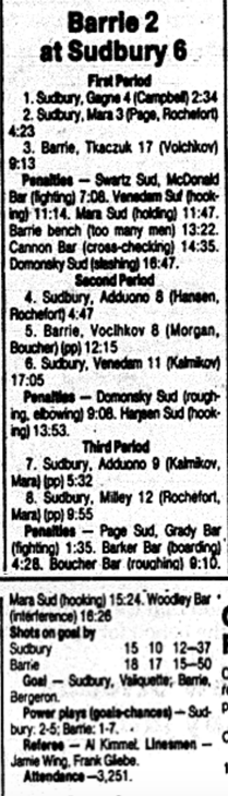 December 8 1996- Barrie @ Sudbury (6-2 Barrie)