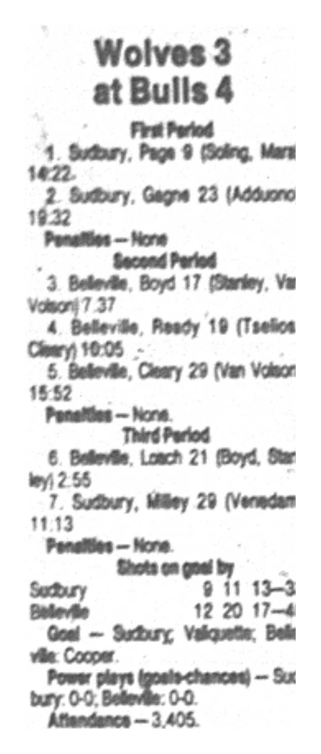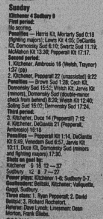 November 1 1996- Belleville @ Sudbury (6-5 Belleville)
