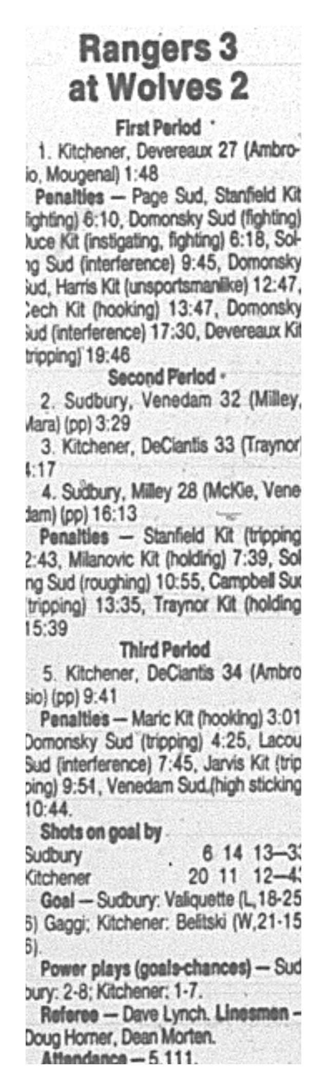 January 3 1997- Detroit @ Sudbury (4-1 Sudbury)