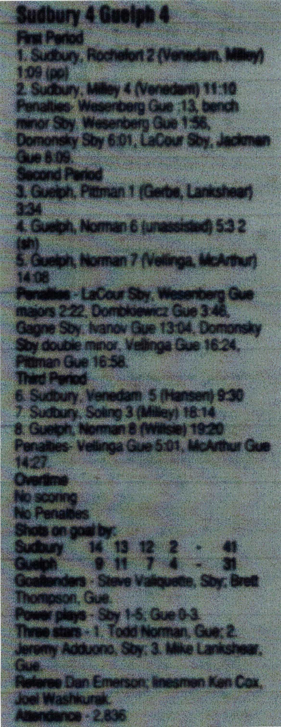 December 10 1996- Soo @ Sudbury (6-6 Tie)
