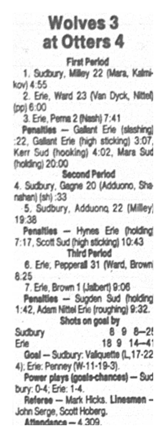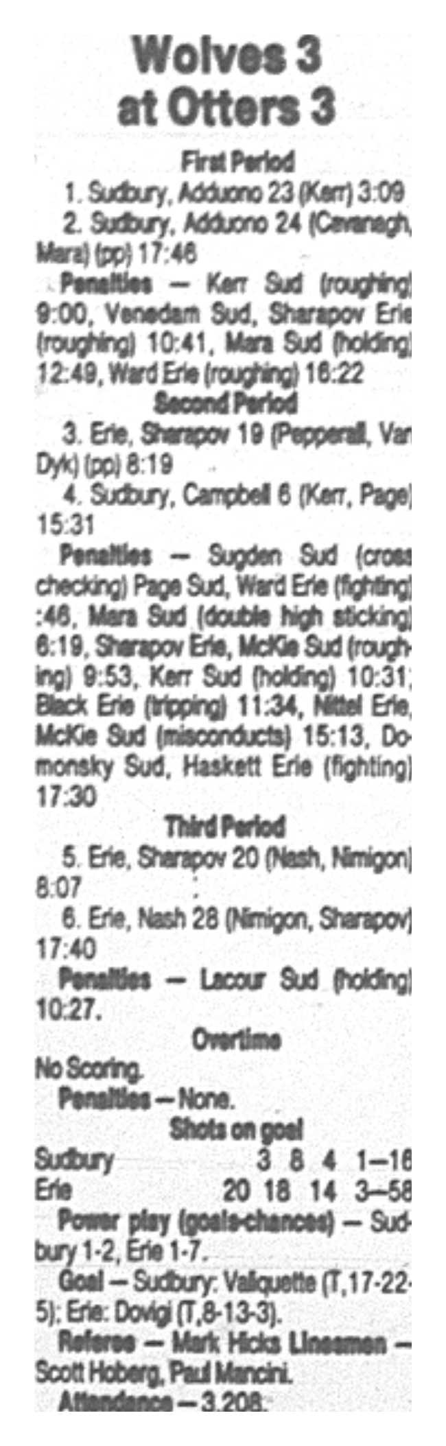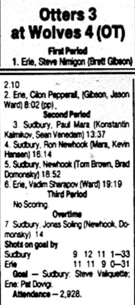 September 20 1996- Erie @ Sudbury (7-6 Erie)