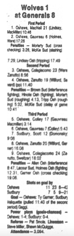 November 15 1996- Oshawa @ Sudbury (5-4 Sudbury)