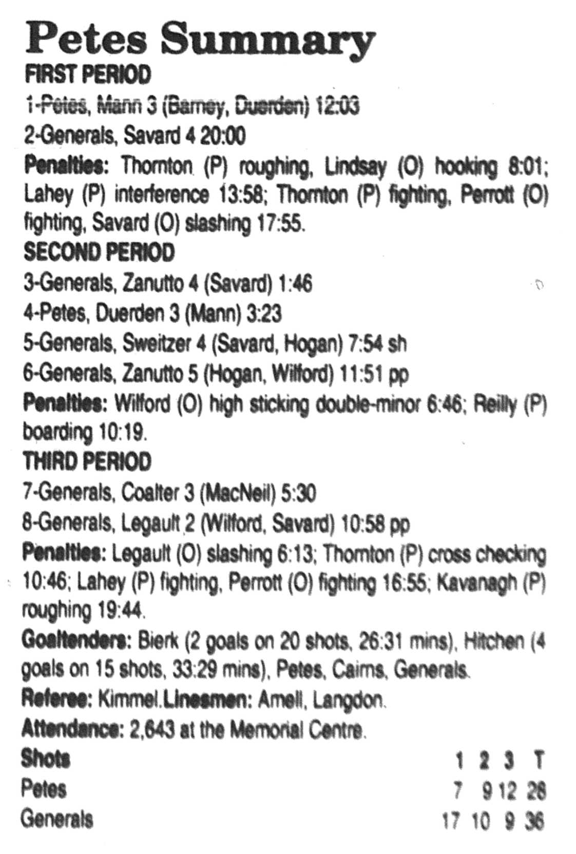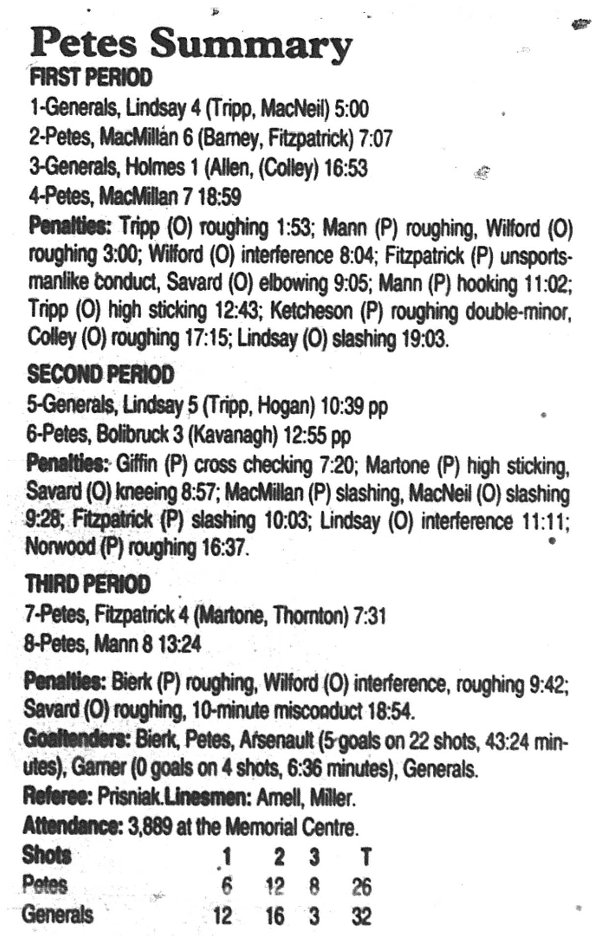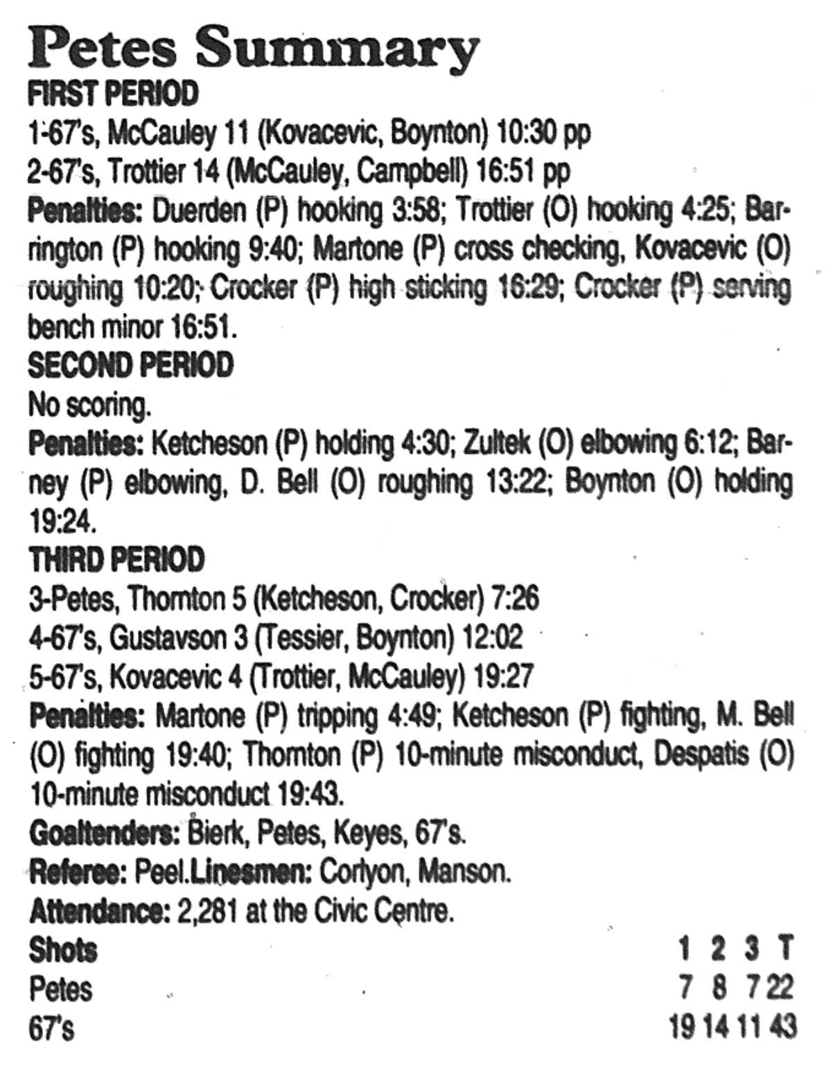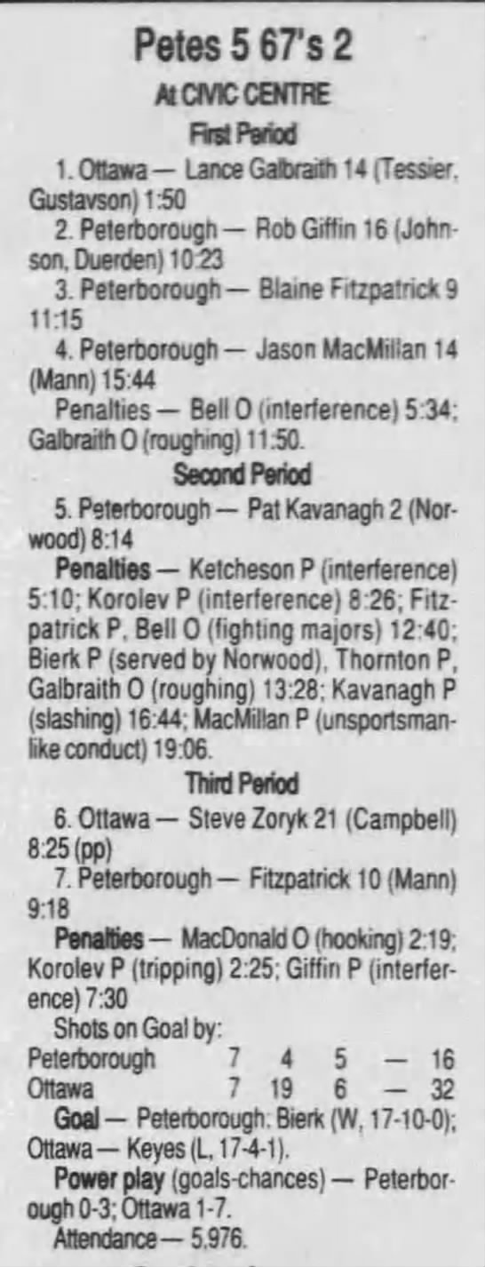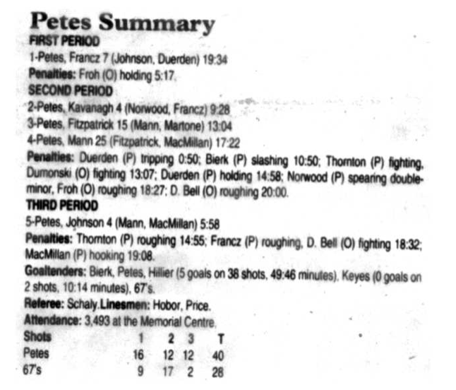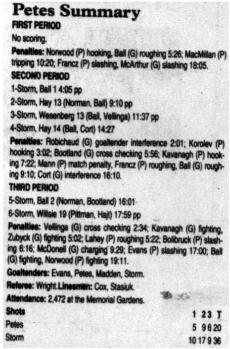 Here are the boxscores from the 1996-97 Peterborough Petes season. All boxscores from this season are here (77/77 boxscores). If you have any of the games that are missing, please send them my way.