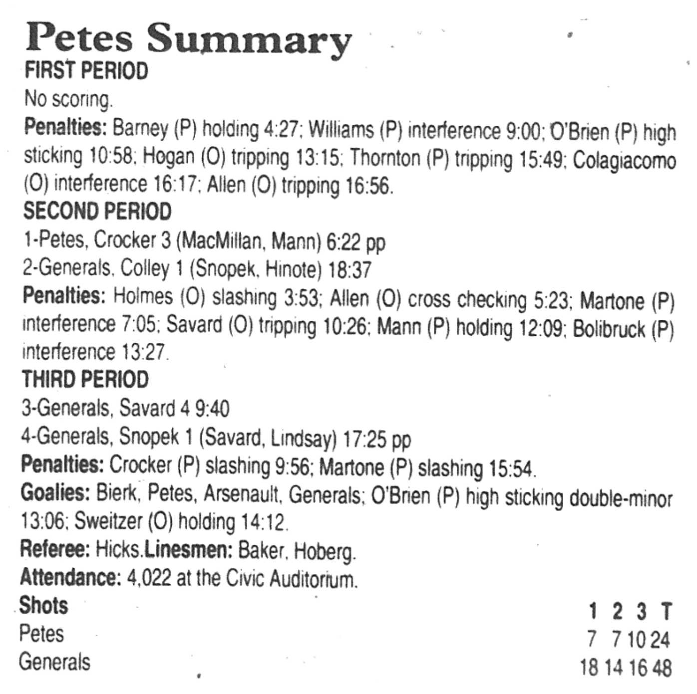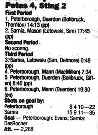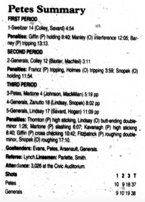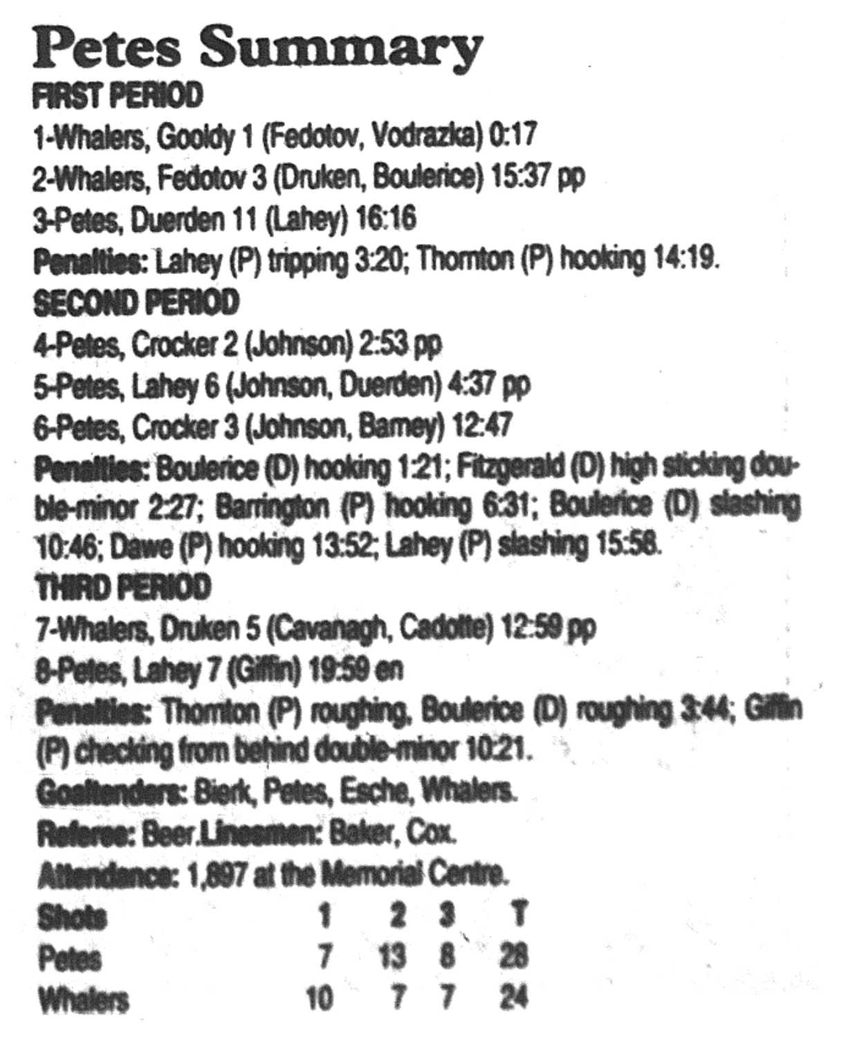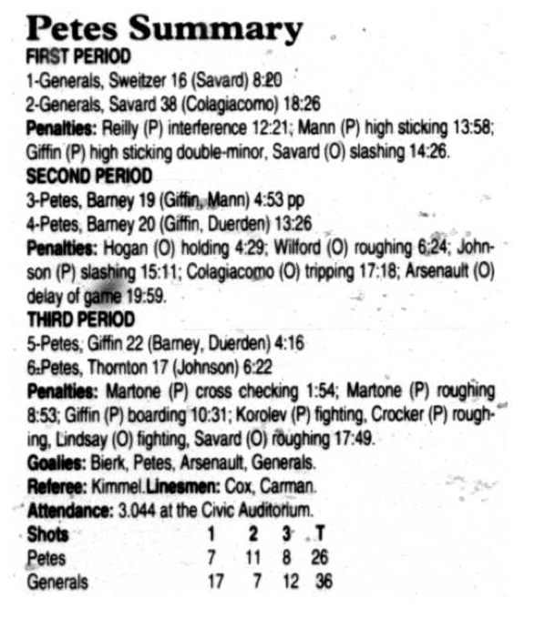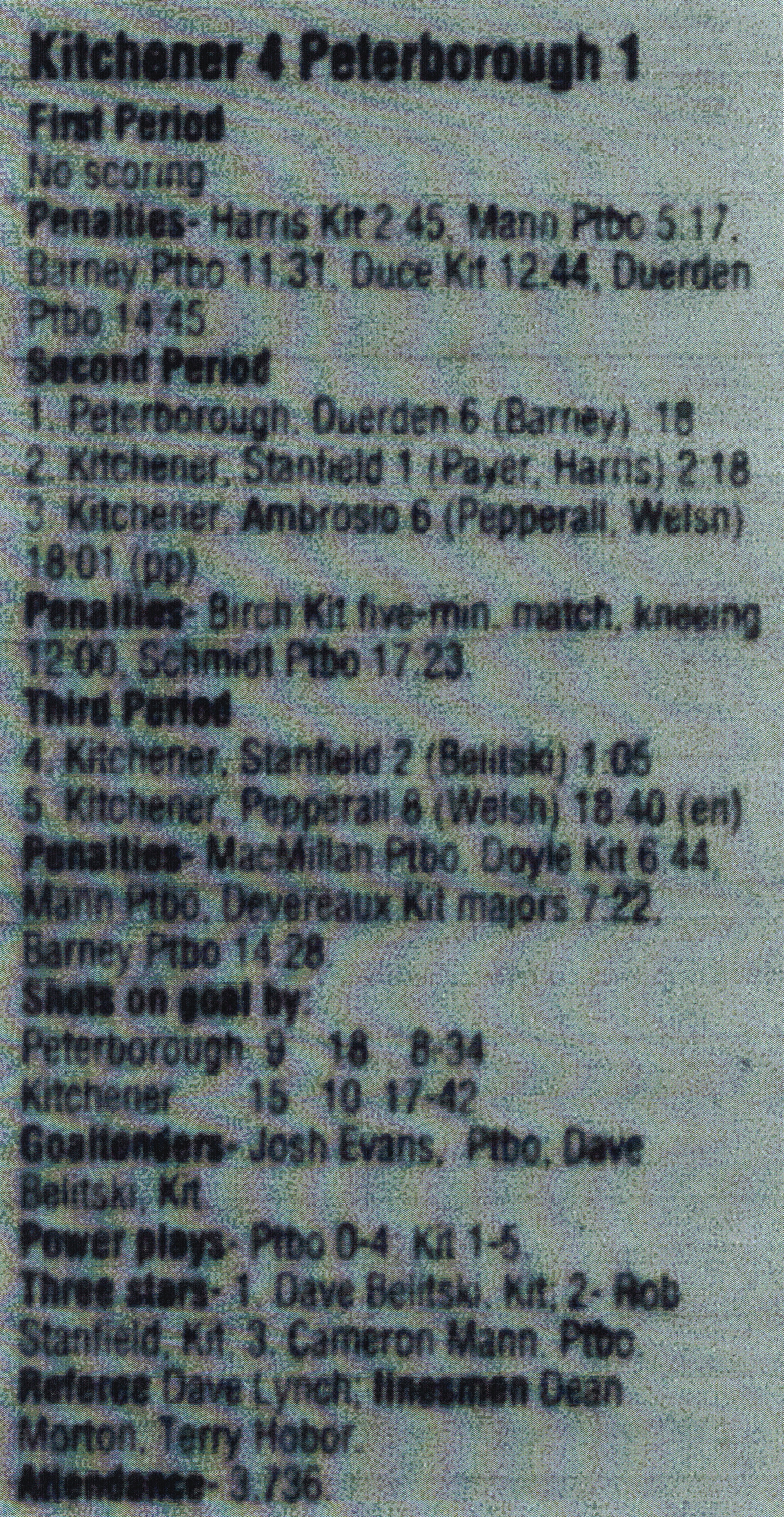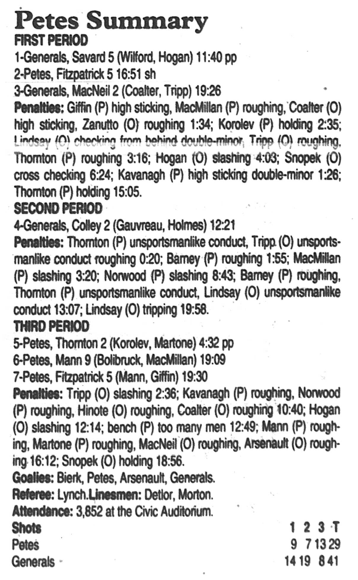 Here are the boxscores from the 1996-97 Peterborough Petes season. All boxscores from this season are here (77/77 boxscores). If you have any of the games that are missing, please send them my way.