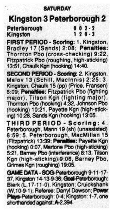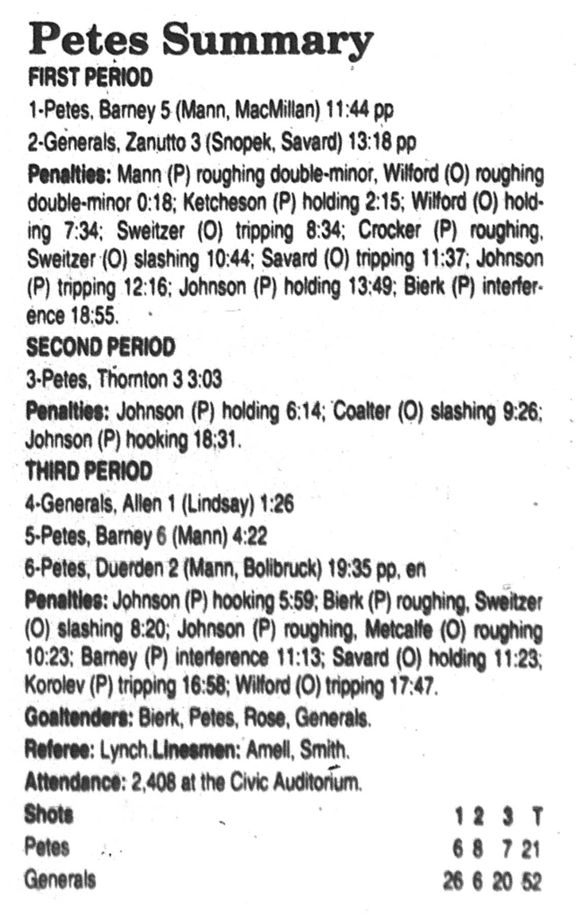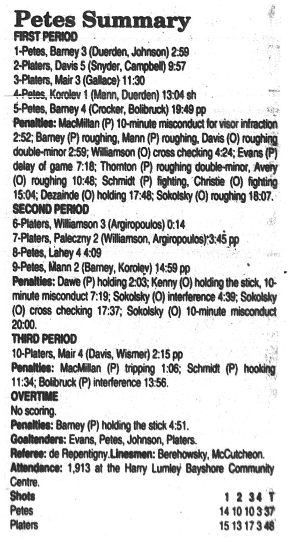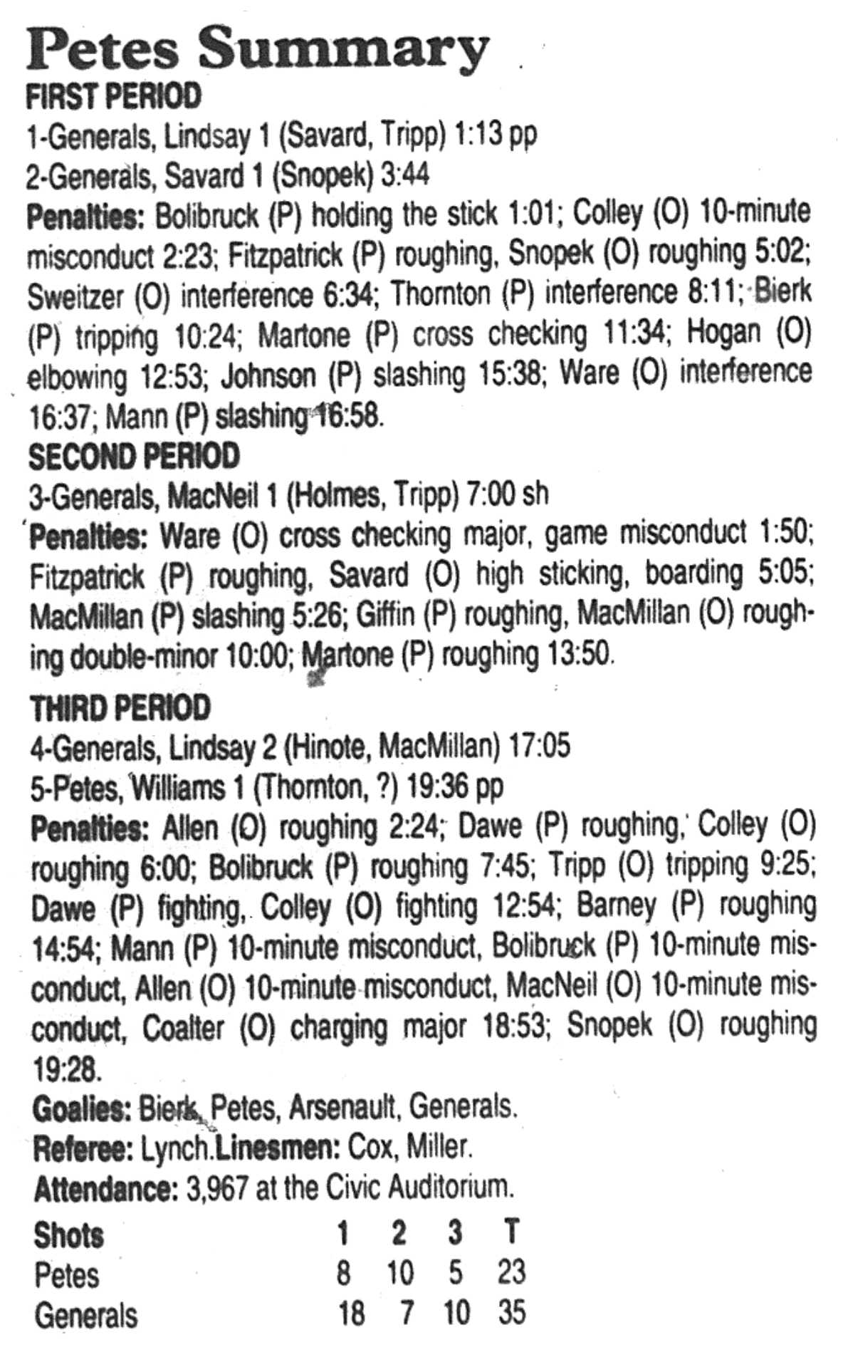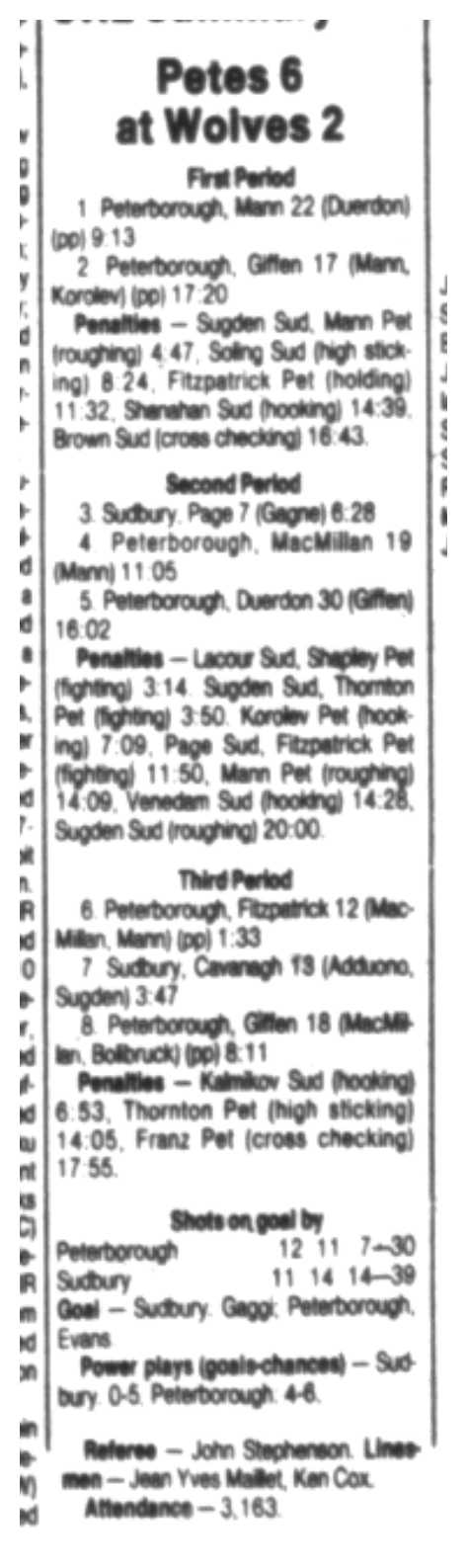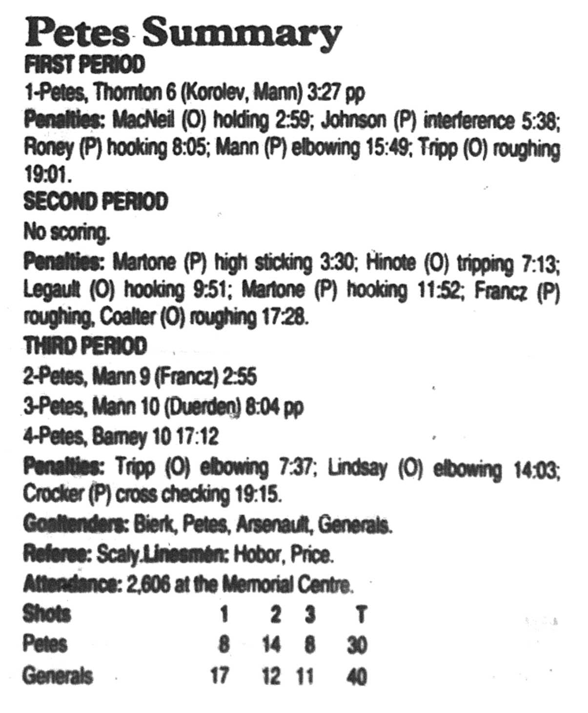 Here are the boxscores from the 1996-97 Peterborough Petes season. All boxscores from this season are here (77/77 boxscores). If you have any of the games that are missing, please send them my way.