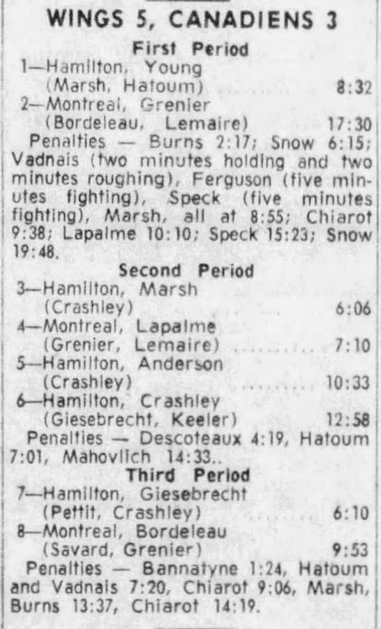 Here are the boxscores from the 1965-66 Hamilton Red Wings season. Most boxscores from that season are here (46/53 boxscores). If you have any of the games that are missing, please send them my way.