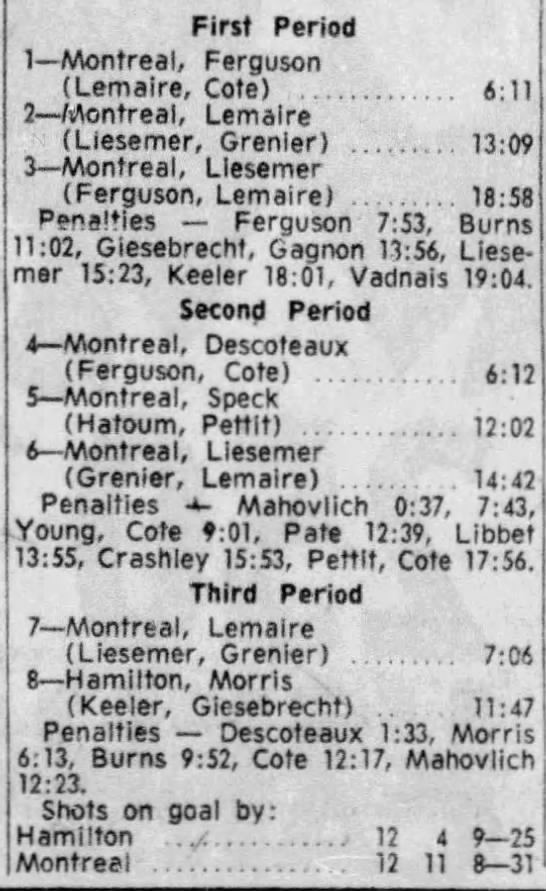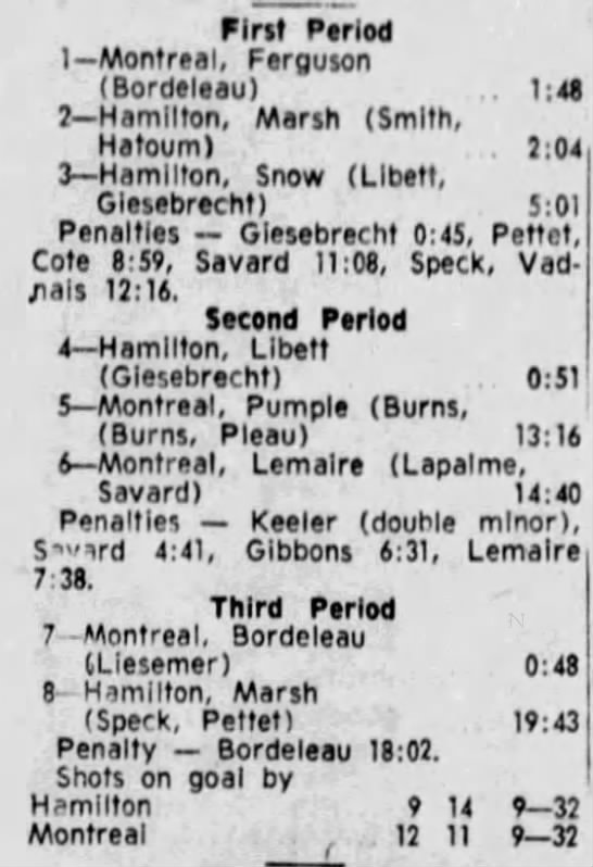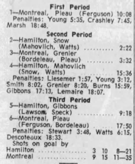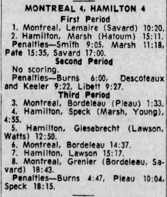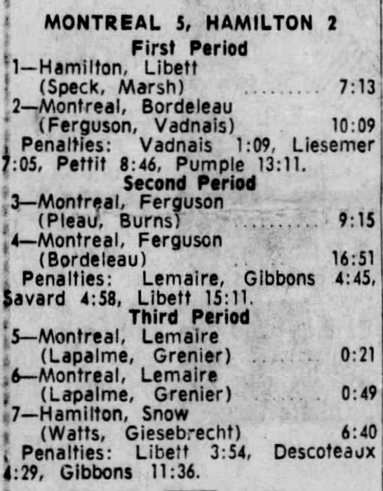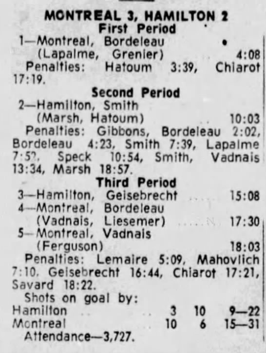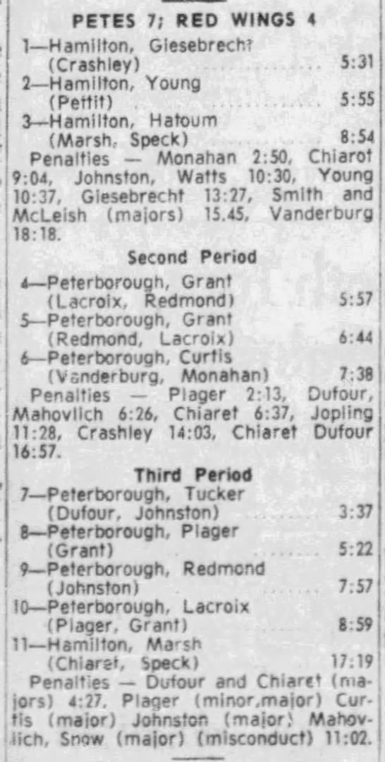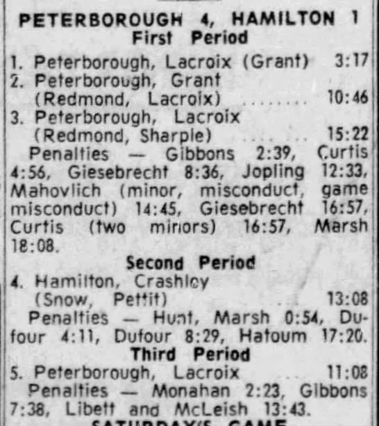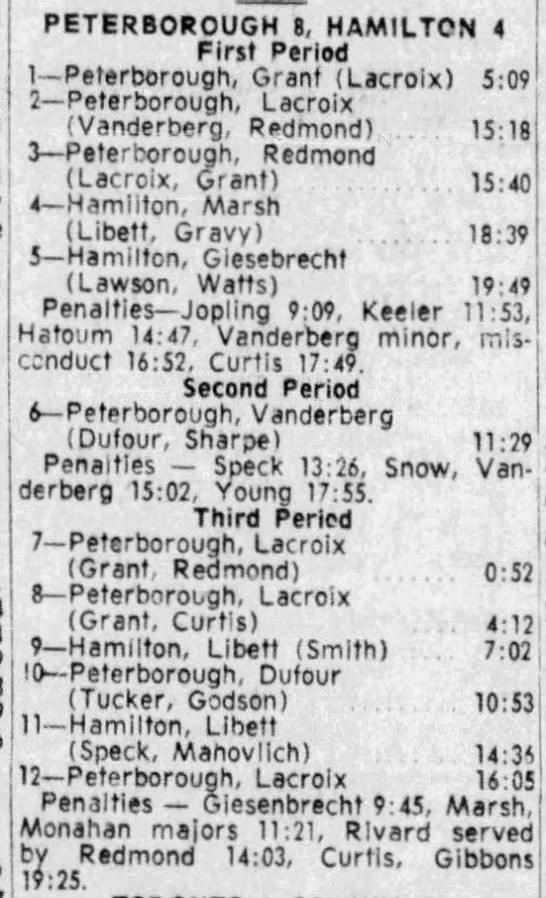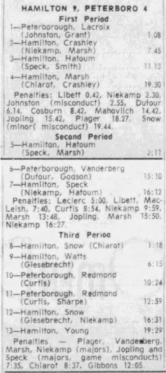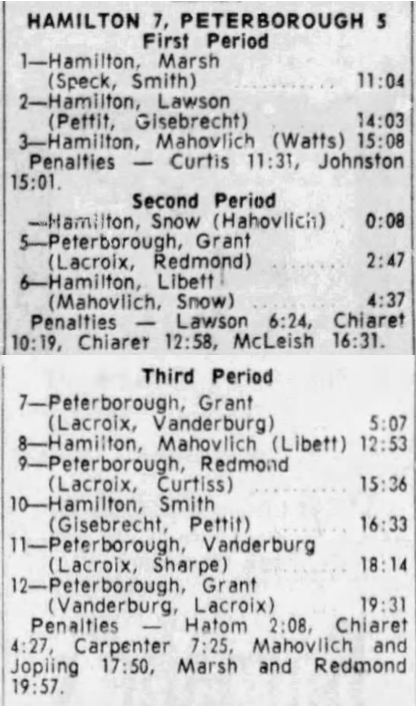 February 10 1966- Peterborough @ Hamilton (7-4 Hamilton)