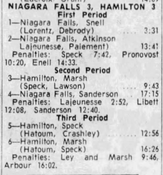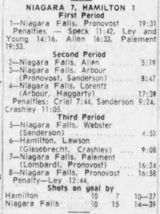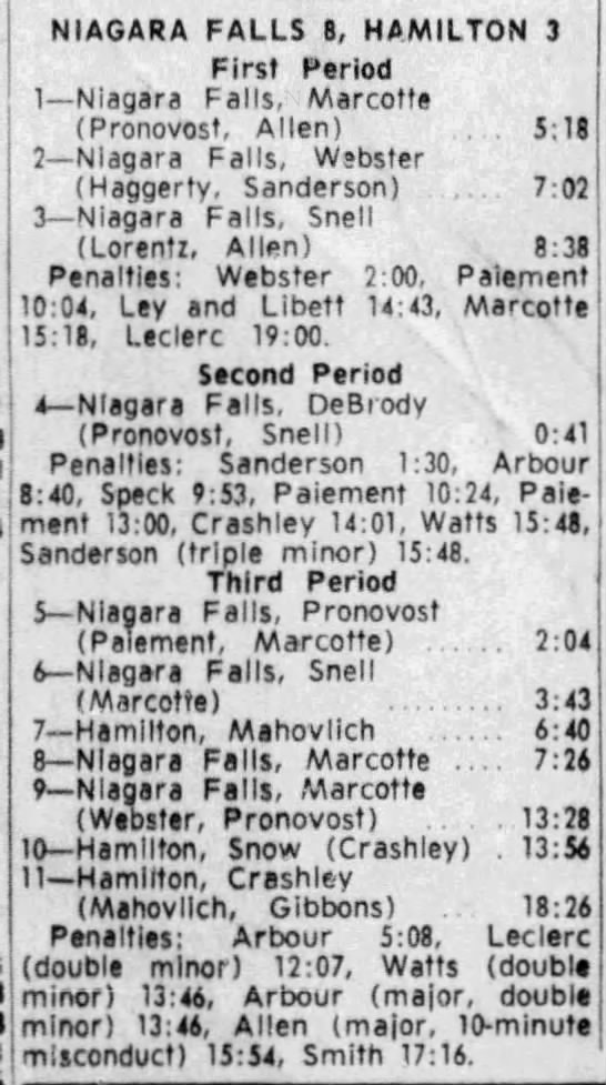 November 12 1965- Hamilton @ Niagara Falls (8-3 Niagara Falls)