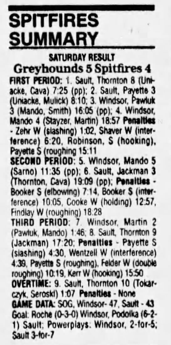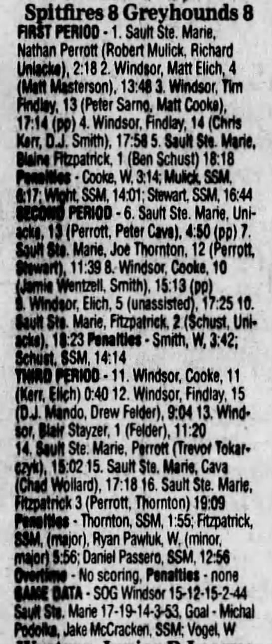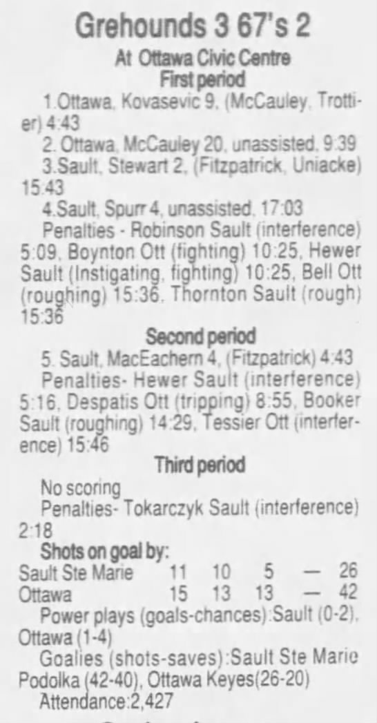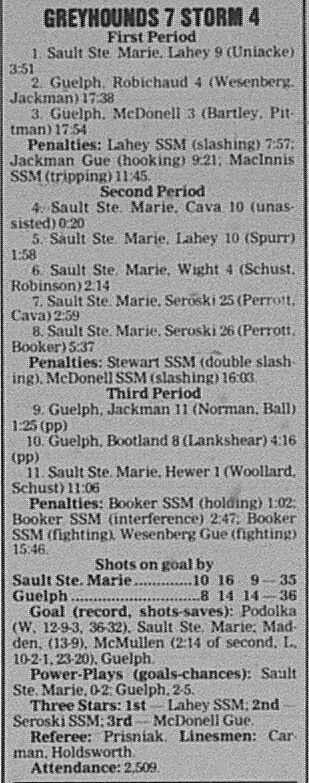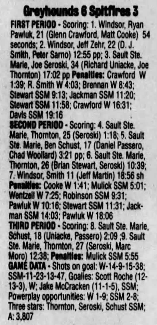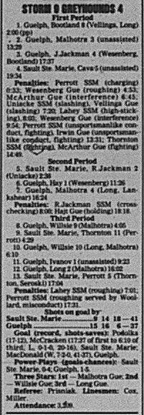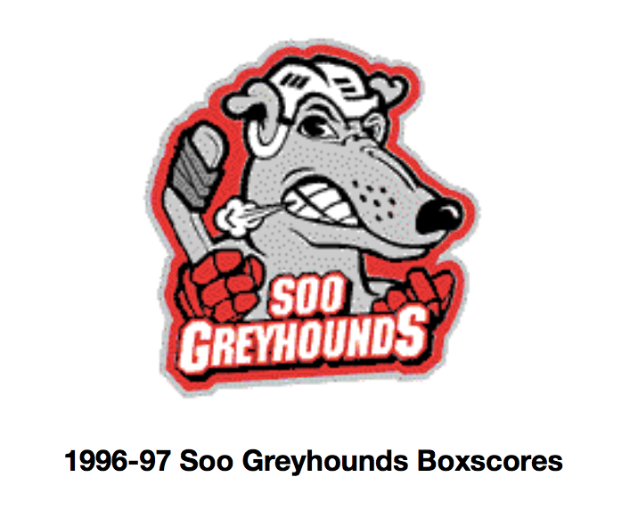 Here are the boxscores from the 1996-97 Soo Greyhounds season. Many boxscores from this season are here (59/77 boxscores). If you have any of the games that are missing, please send them my way.