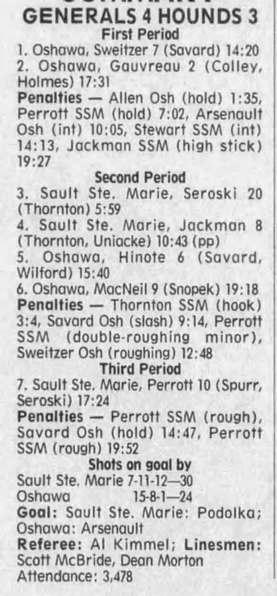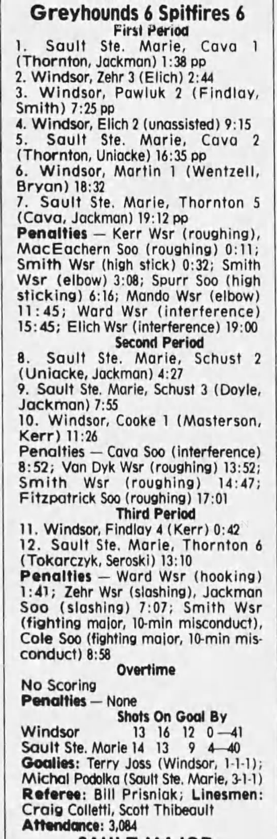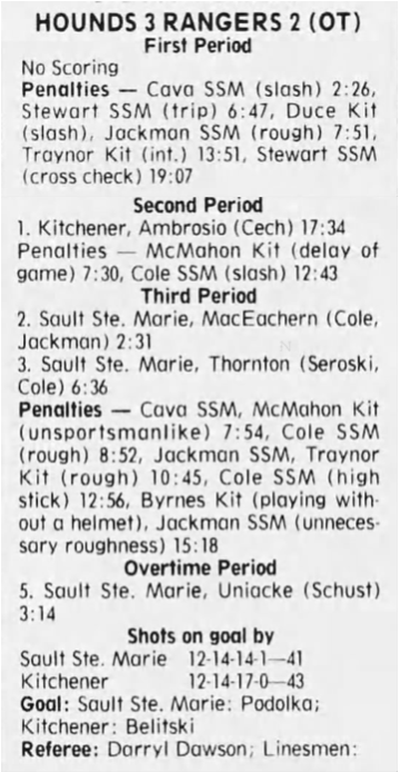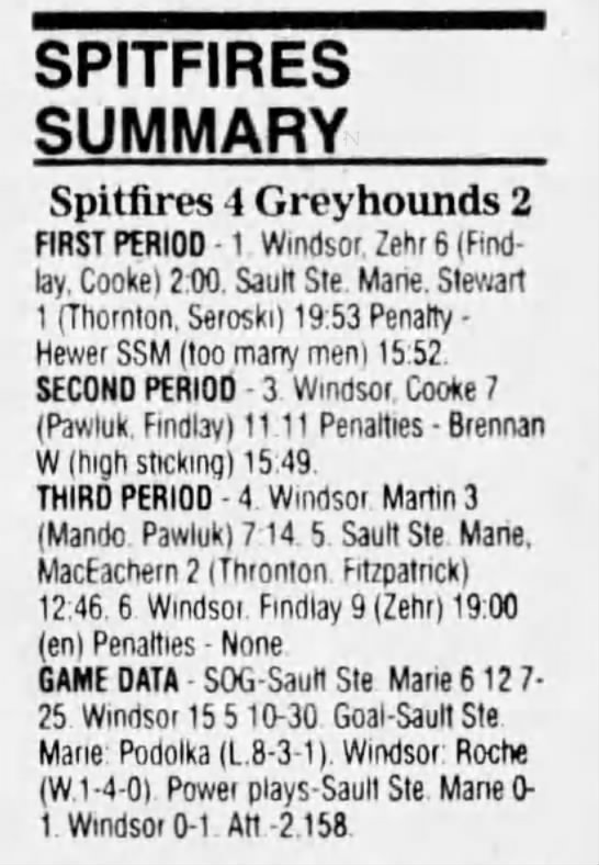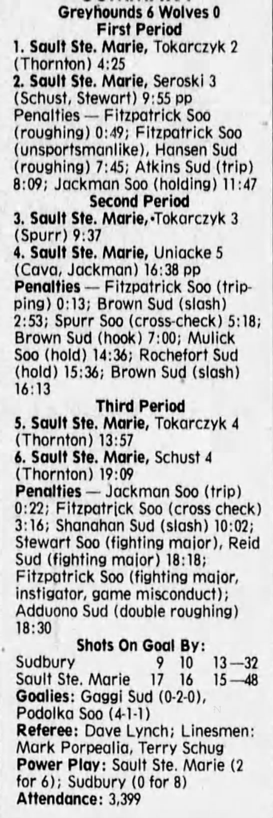 Here are the boxscores from the 1996-97 Soo Greyhounds season. Many boxscores from this season are here (59/77 boxscores). If you have any of the games that are missing, please send them my way.