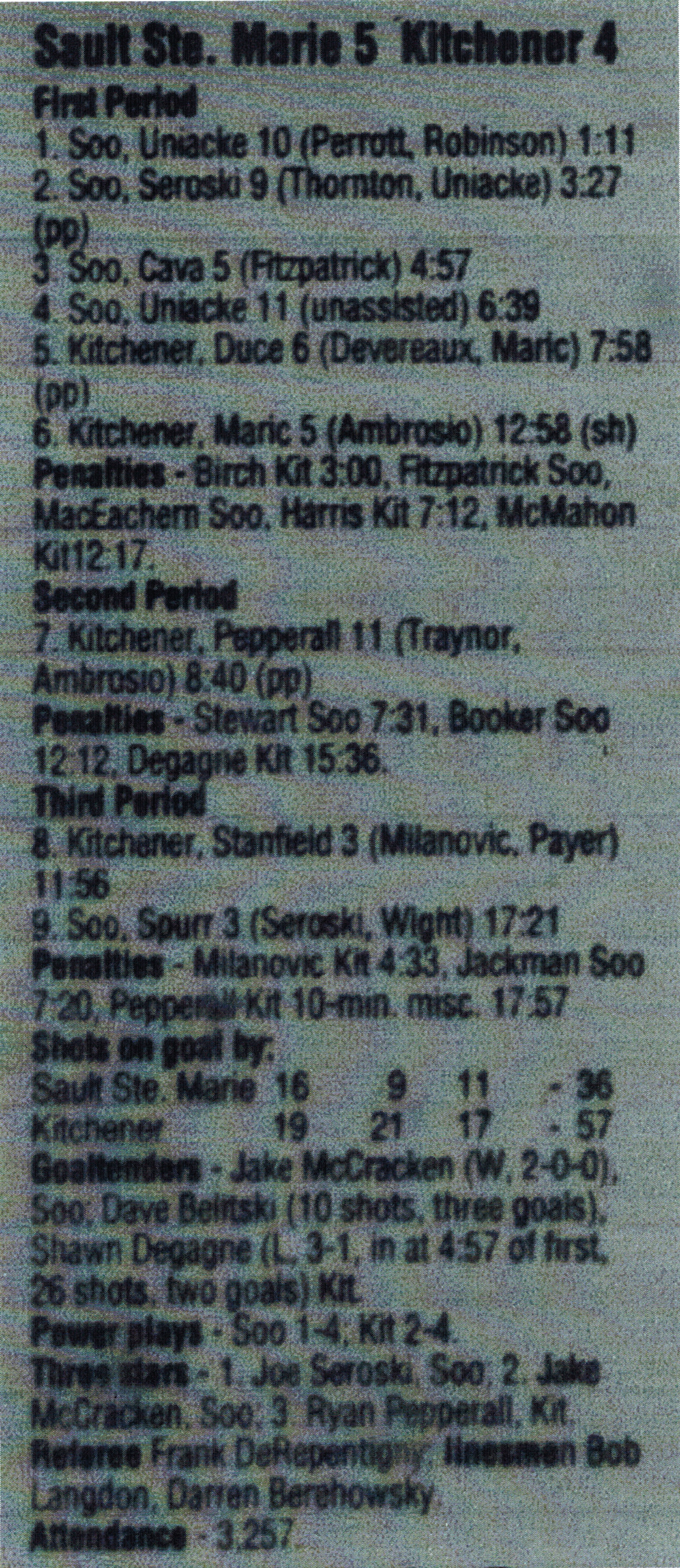 December 1 1996- Soo @ Oshawa (5-3 Oshawa)