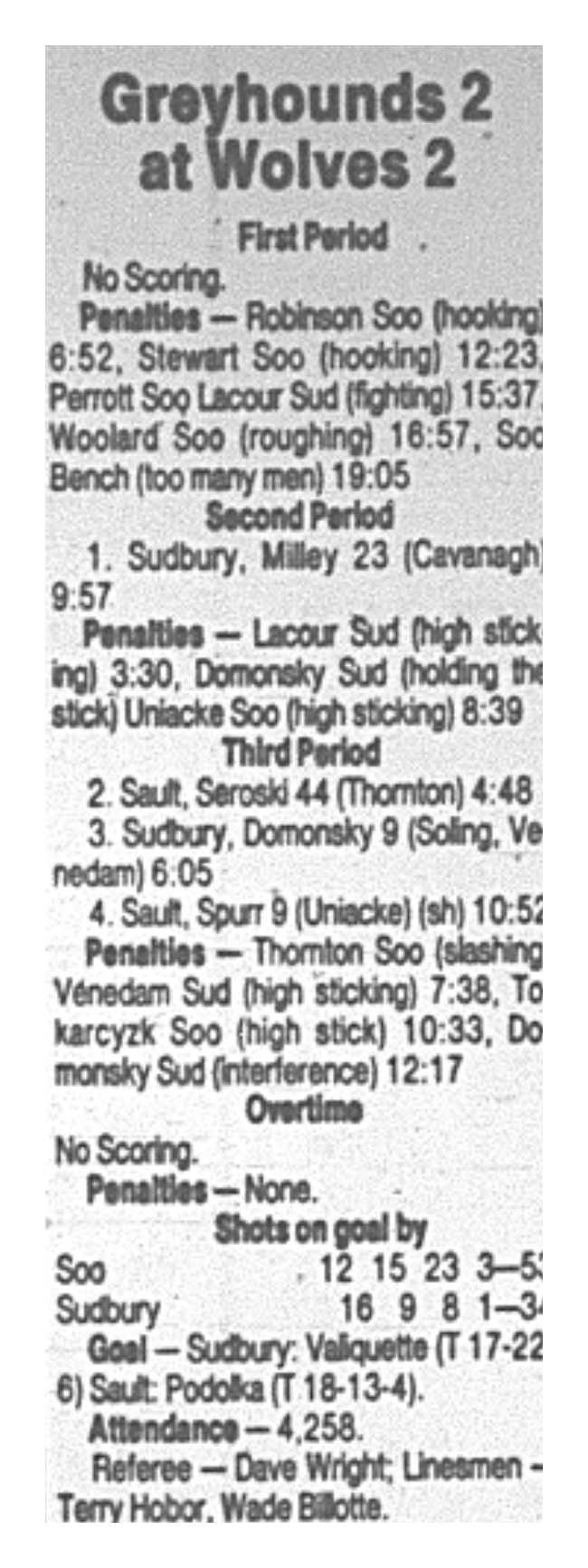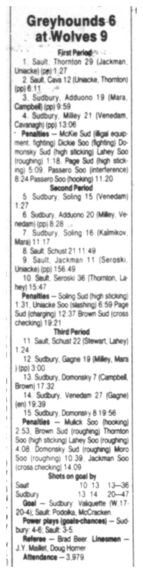 December 10 1996- Soo @ Sudbury (6-6 Tie)