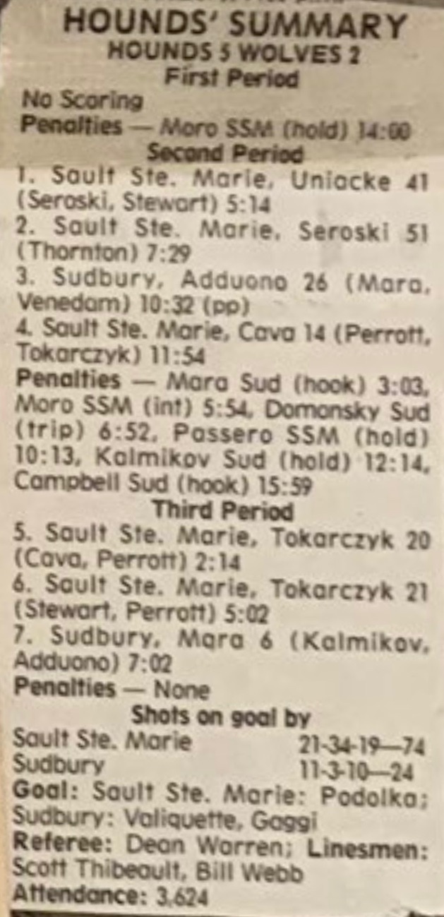 March 1 1997- Soo @ Detroit (5-1 Soo)