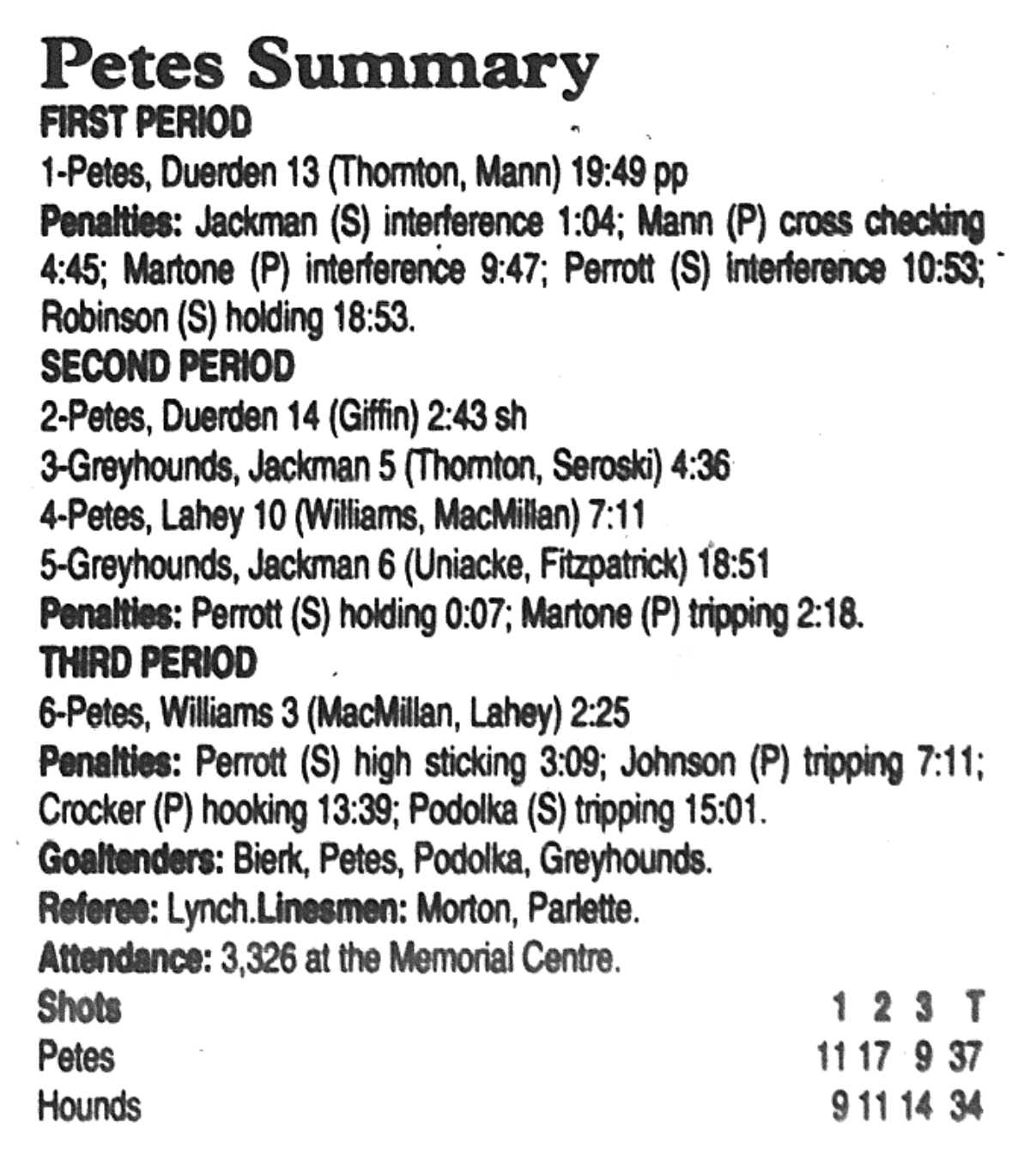November 9 1996- Detroit @ Soo (4-3 Detroit)