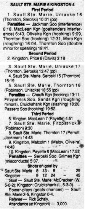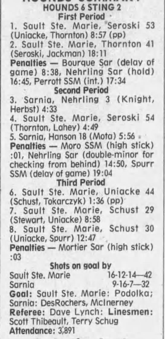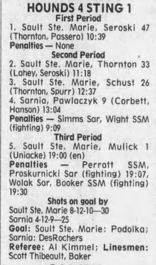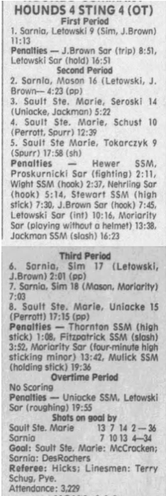 October 28 1996- Soo @ Sarnia (7-5 Sarnia)