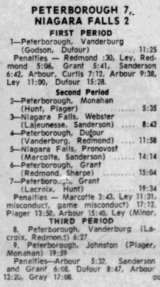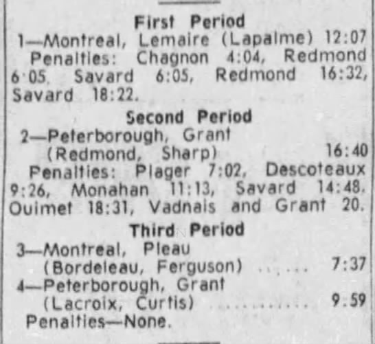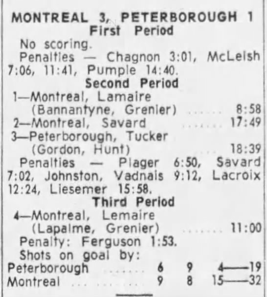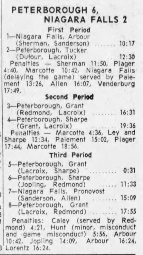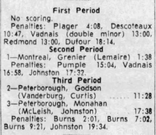 October 28 1965- St. Catharines @ Peterborough (7-4 Peterborough)