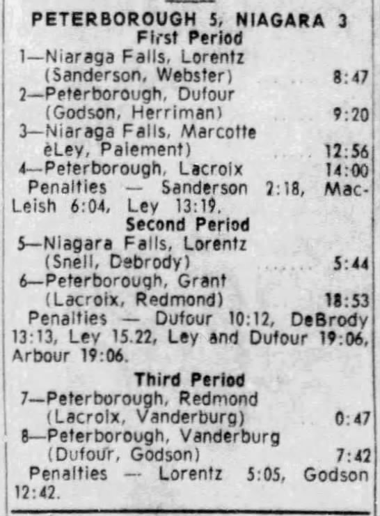 December 30 1965- Niagara Falls @ Peterborough