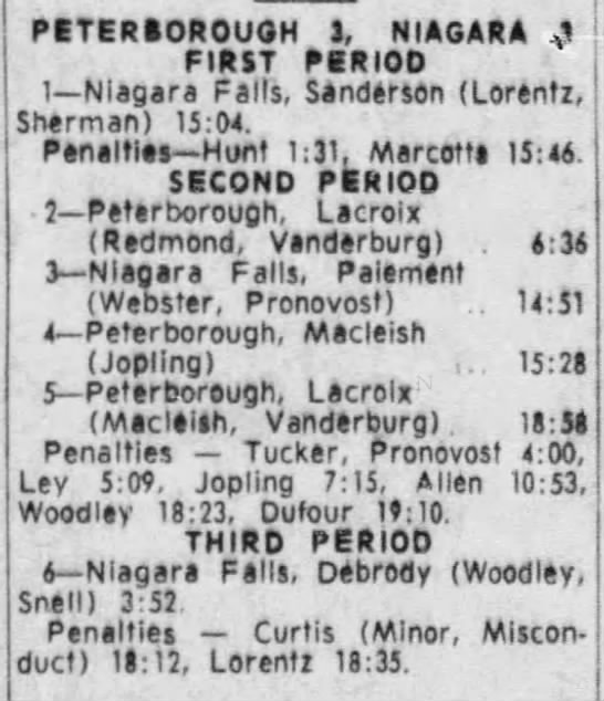 February 11 1966- Peterborough @ Niagara Falls (5-5 Tie)