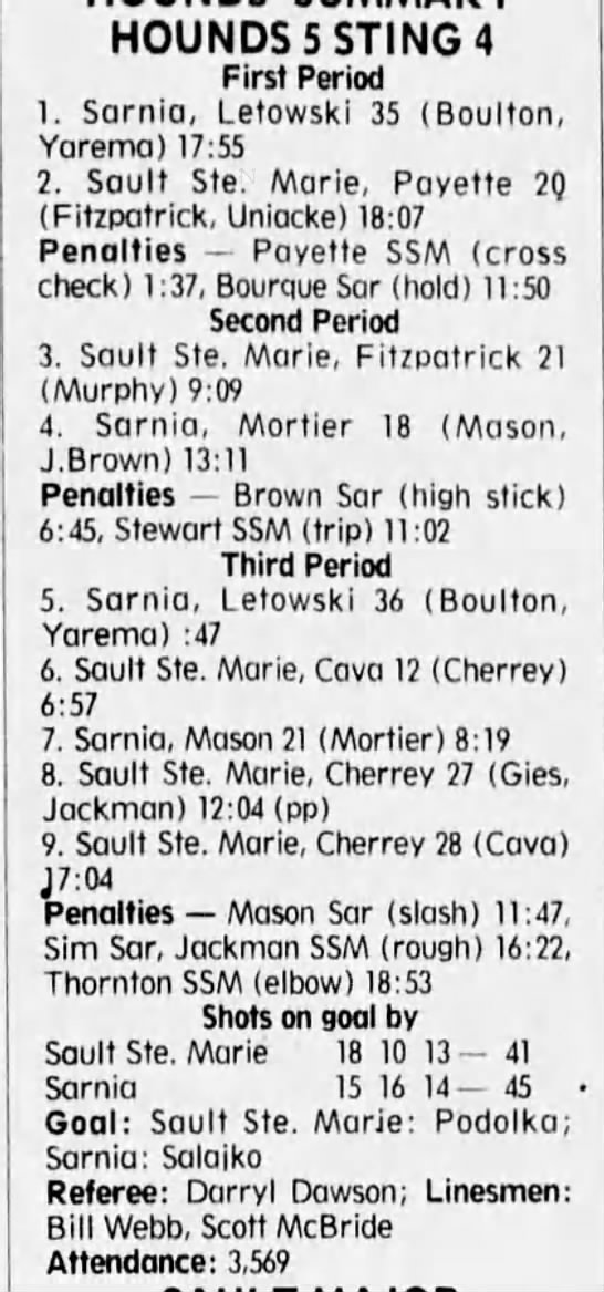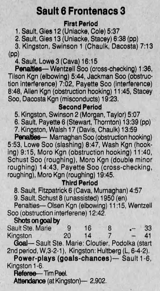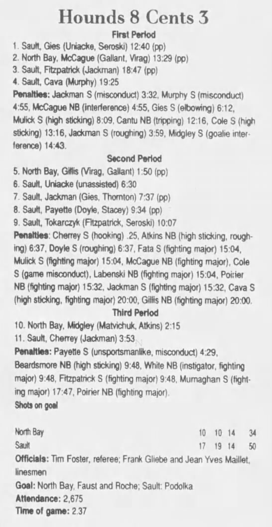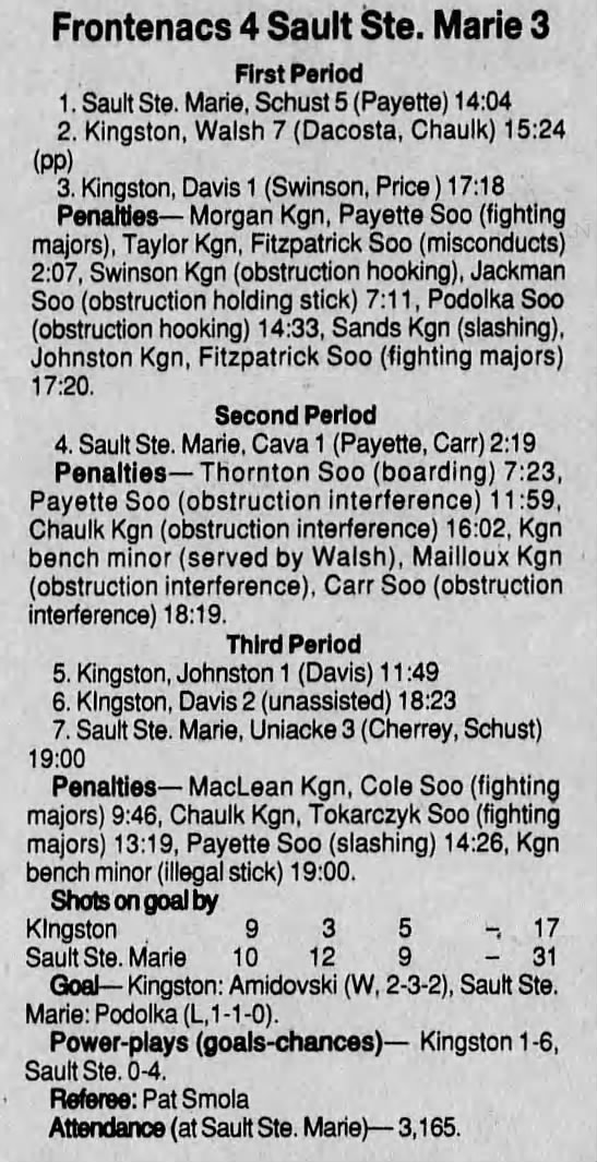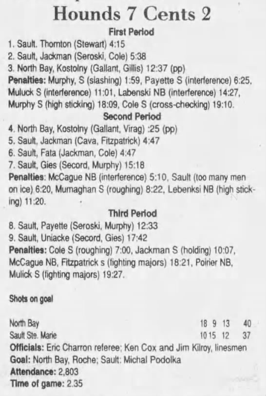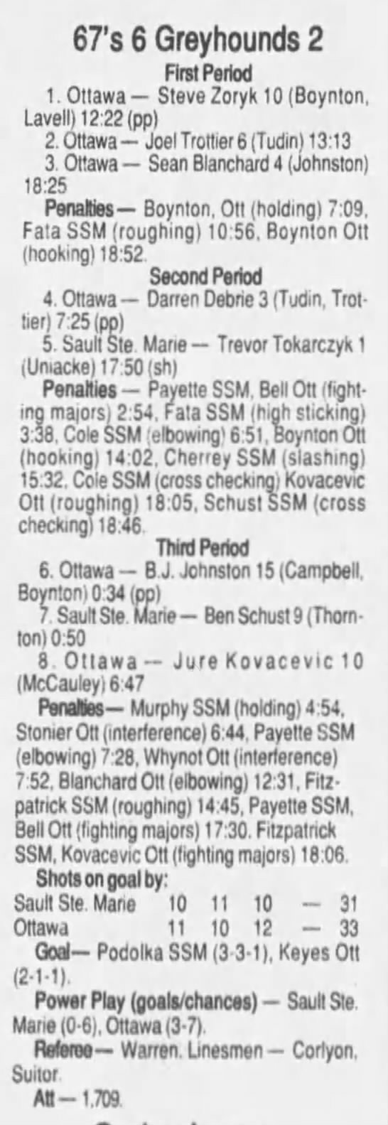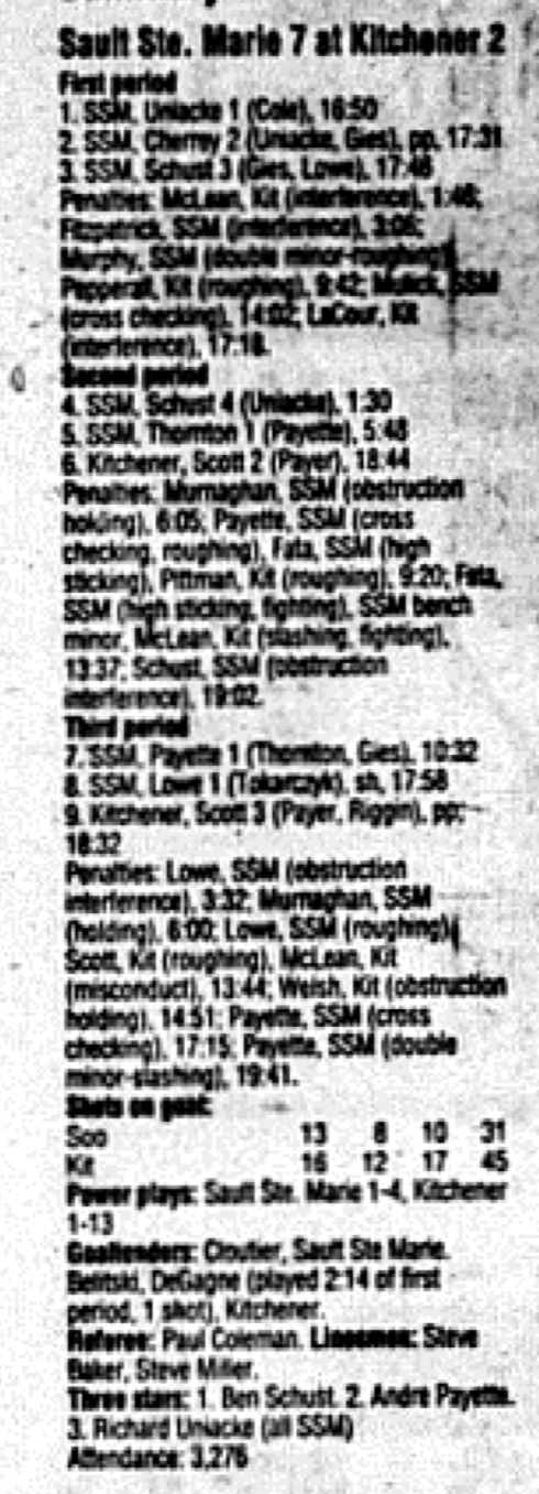 October 8 1995- Niagara Falls @ Soo (5-4 Soo)
