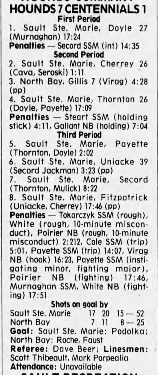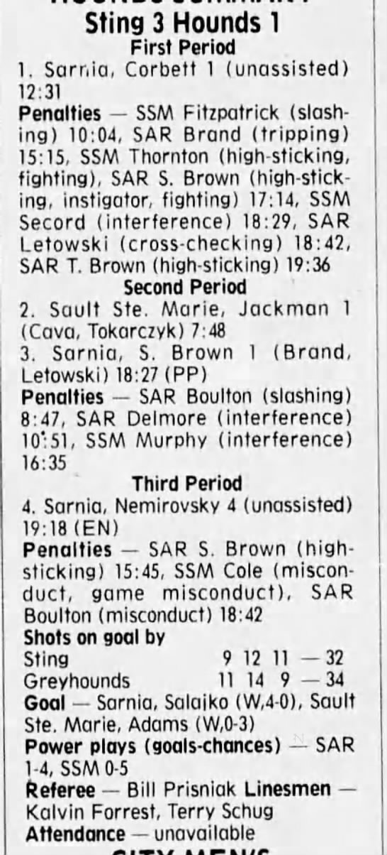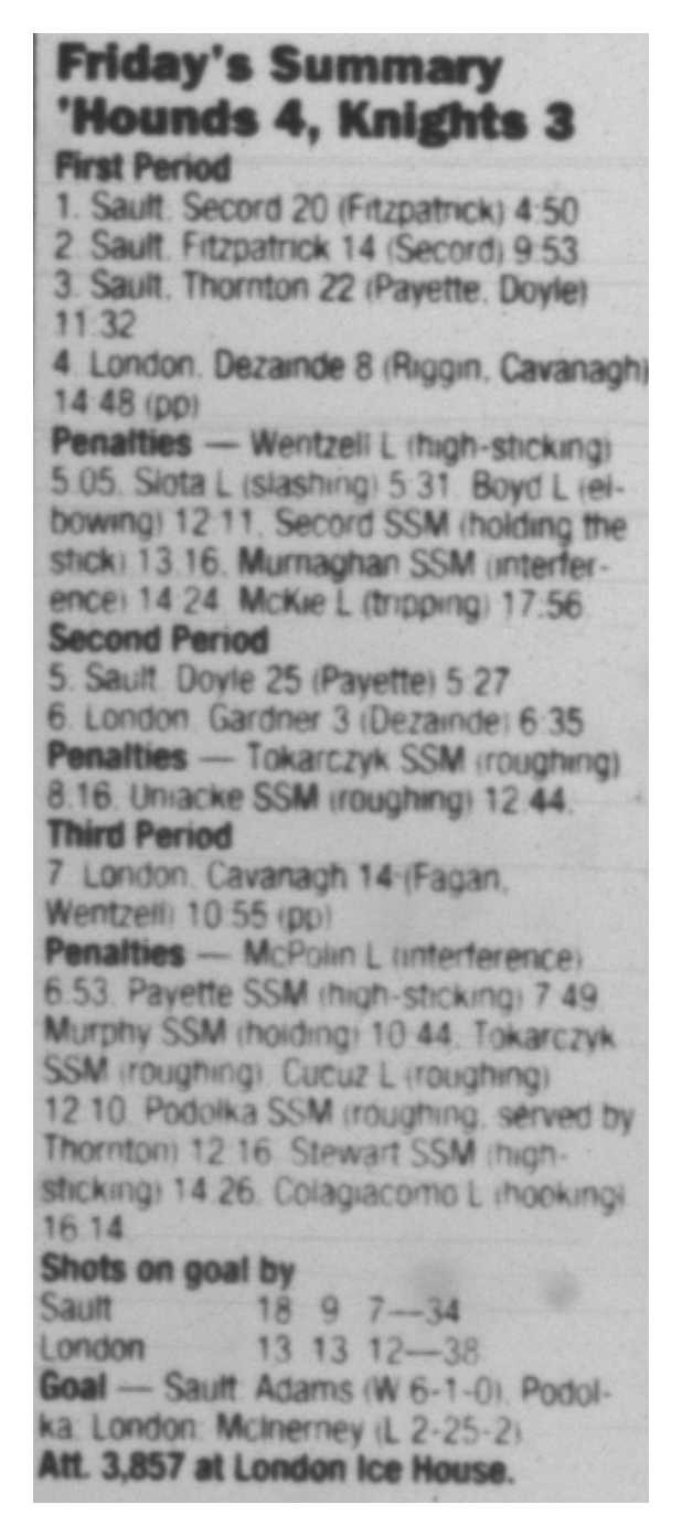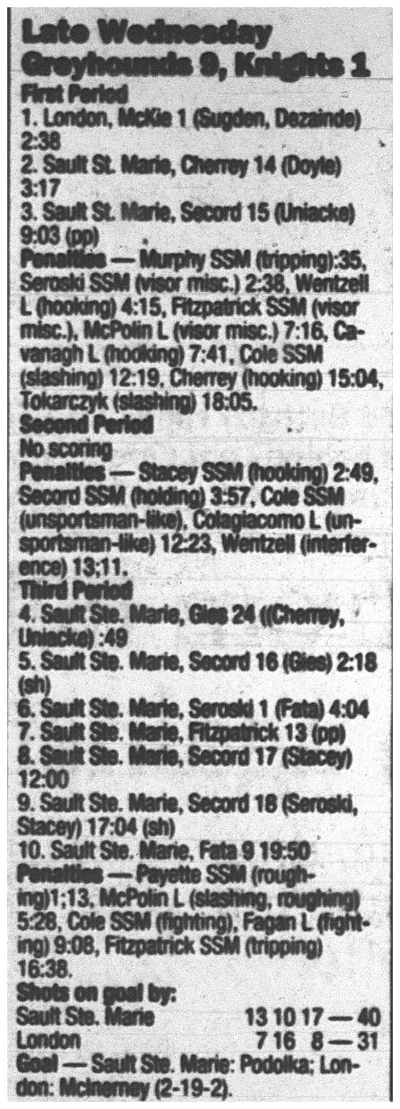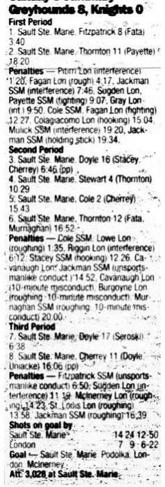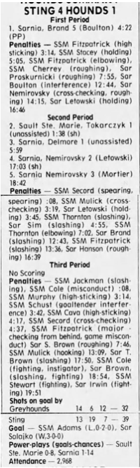Here are the boxscores from the 1995-96 Soo Greyhounds season. There are some that are missing, but most are here (49/70 boxscores). If you have any of the games that are missing, please send them my way.