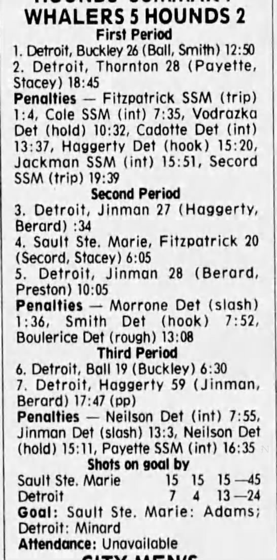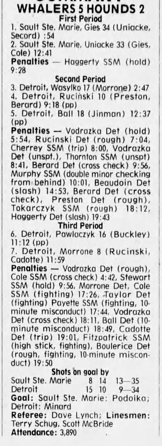 October 28 1995- Soo @ Detroit (Oak Park) (8-5 Detroit)