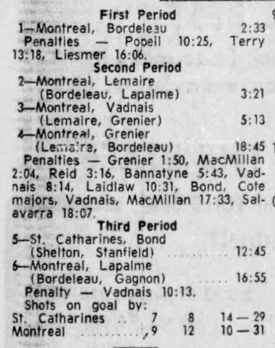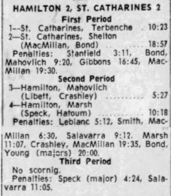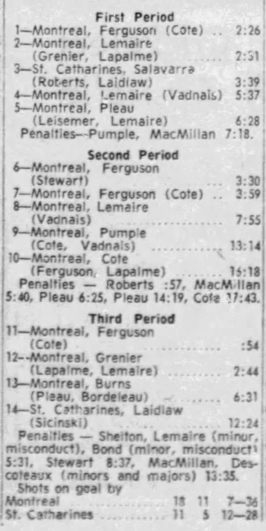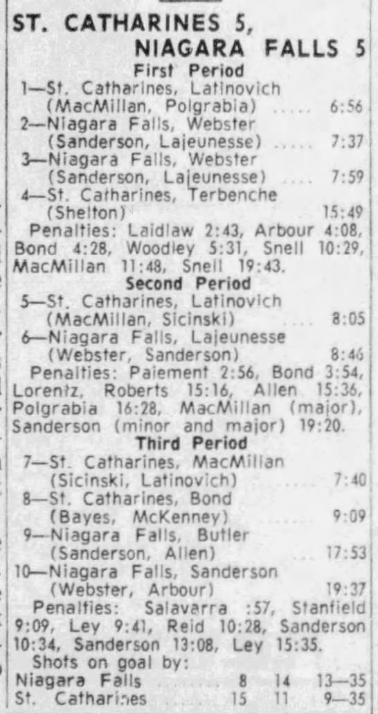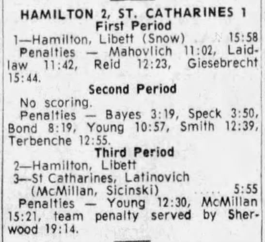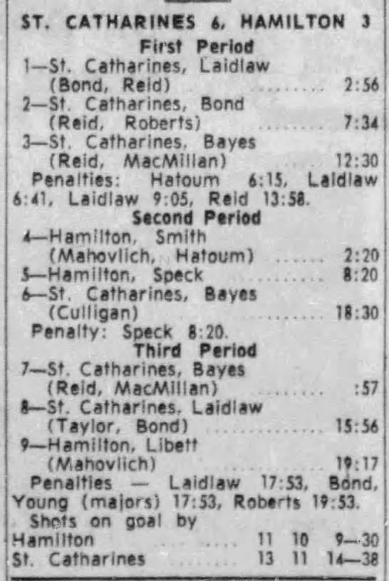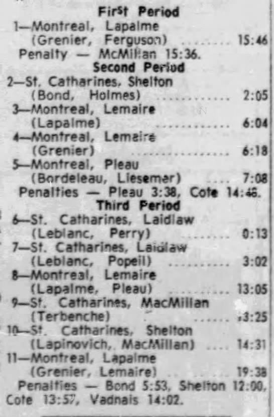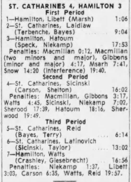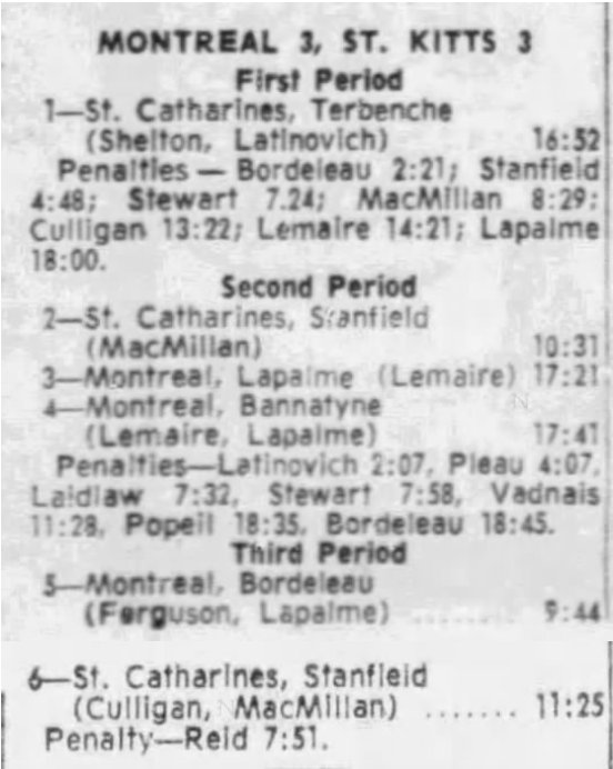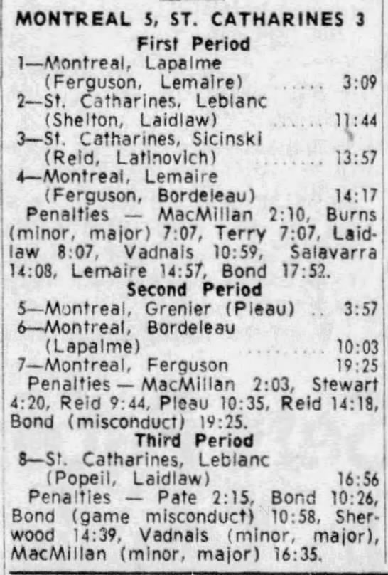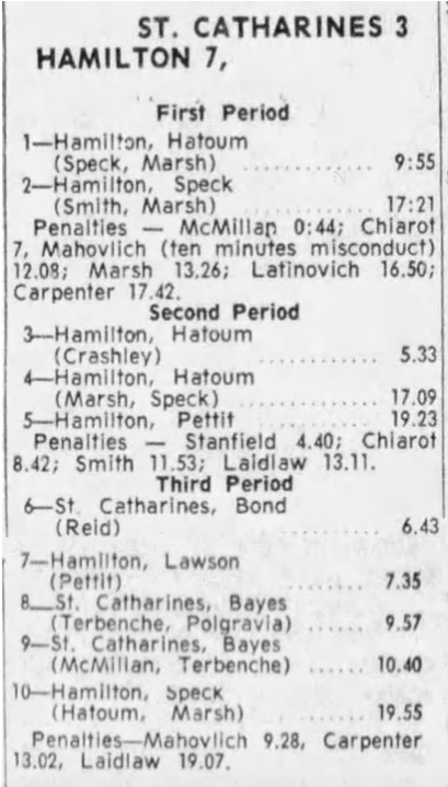 November 7 1965- London @ St. Catharines (6-4 St. Catharines)