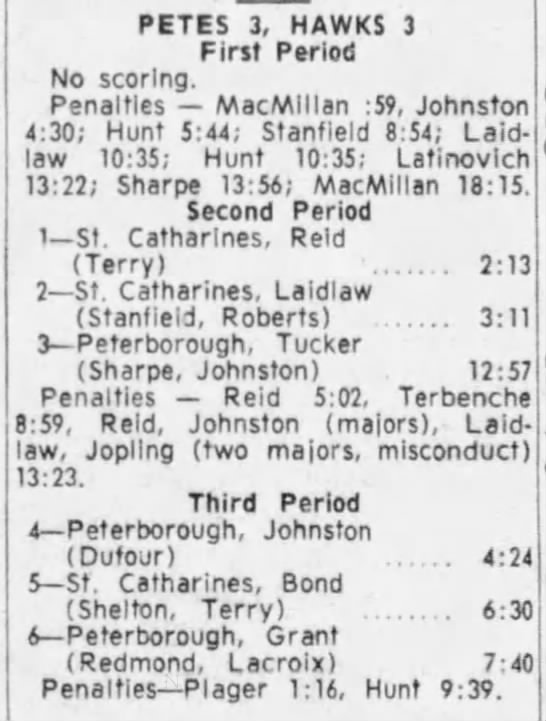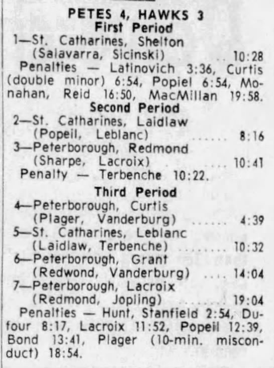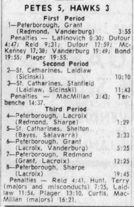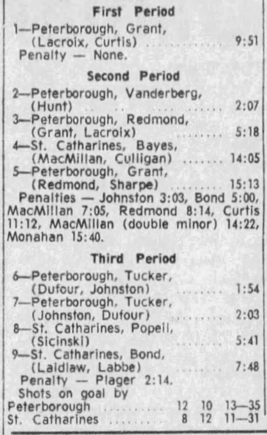 October 28 1965- St. Catharines @ Peterborough (7-4 Peterborough)