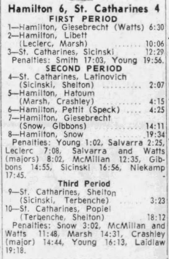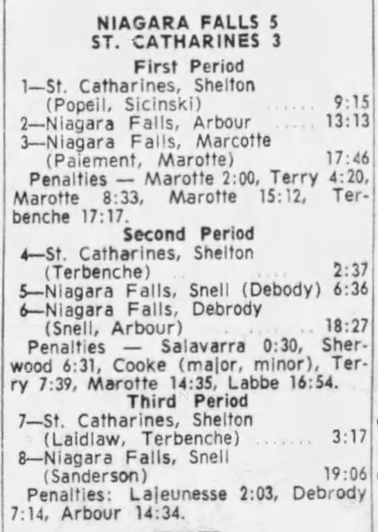 October 22 1965- St. Catharines @ Niagara Falls (6-1 Niagara Falls)