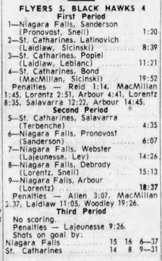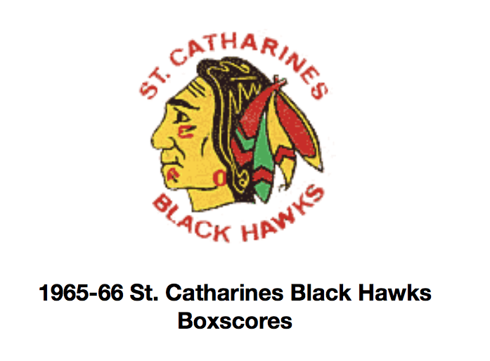 Here are the boxscores from the 1965-66 St. Catharines Black Hawks season. Most boxscores from that season are here (46/55 boxscores). If you have any of the games that are missing, please send them my way.
