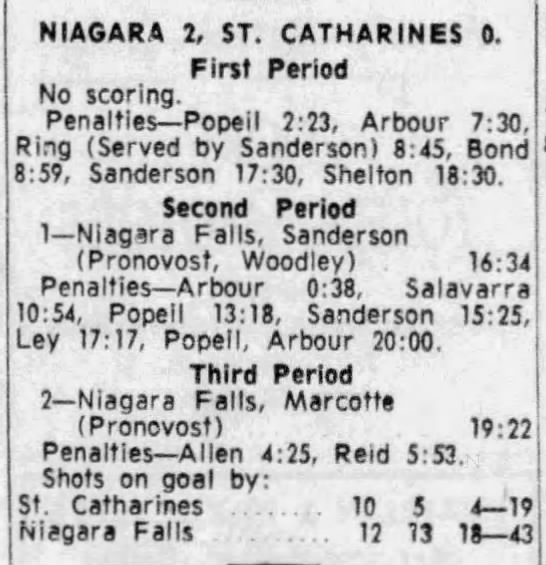 February 18 1966- St. Catharines @ Niagara Falls (10-5 Niagara Falls)