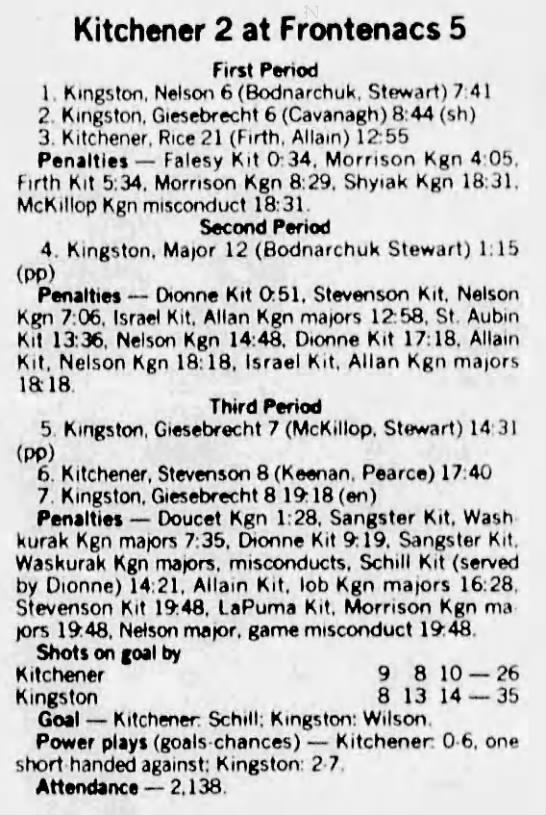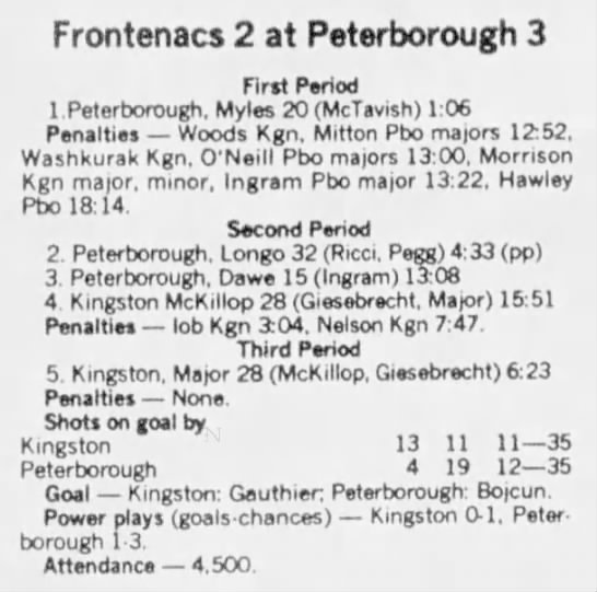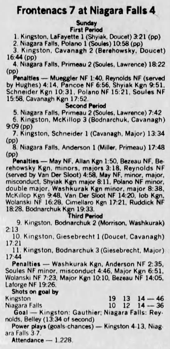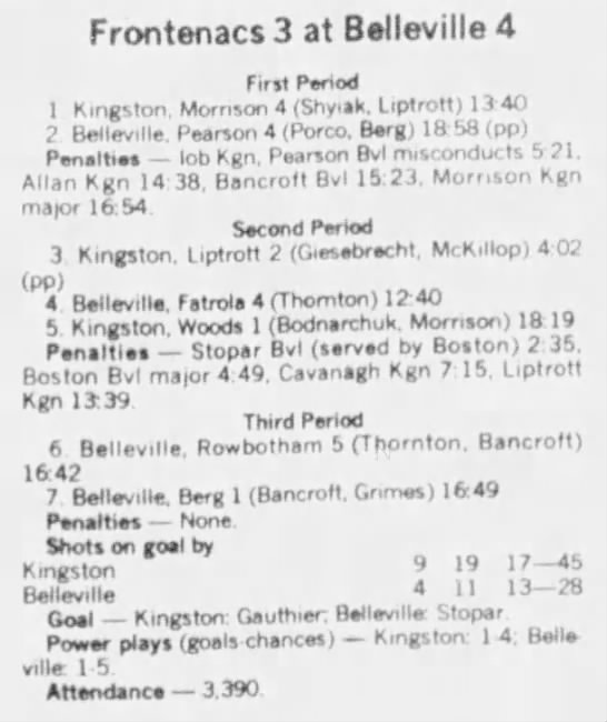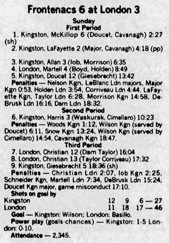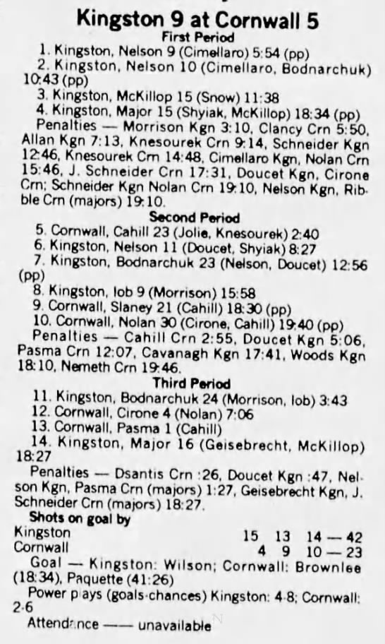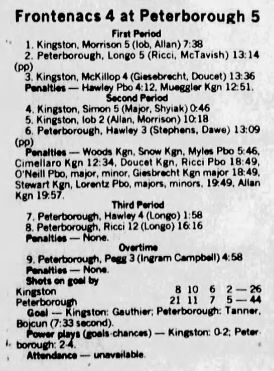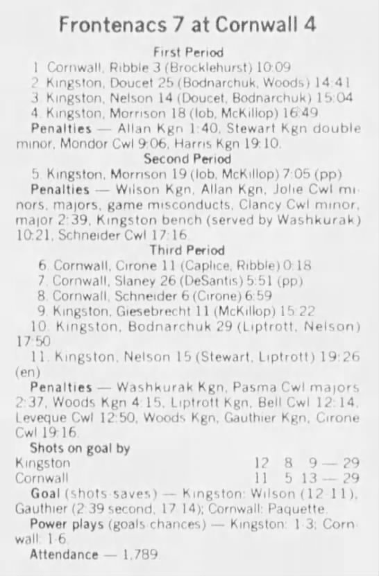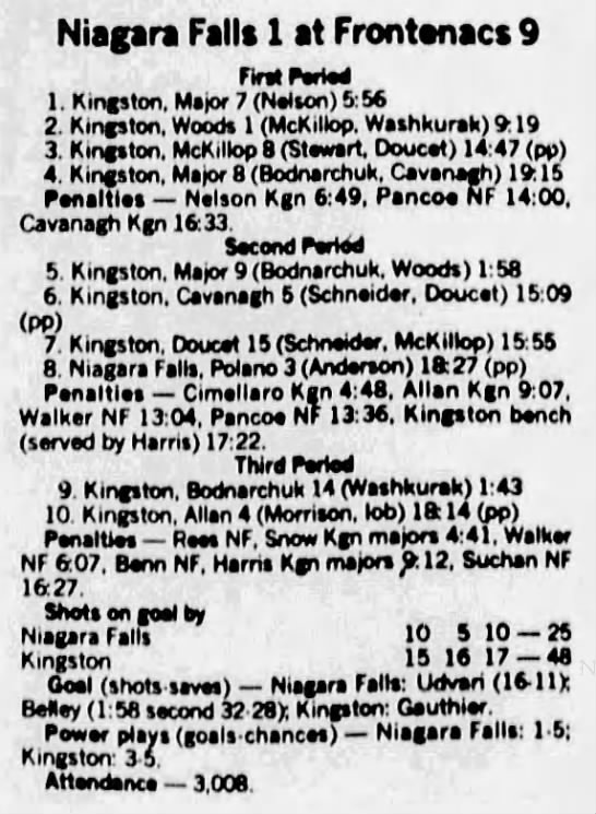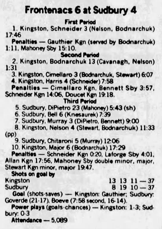 Here are the boxscores from the 1989-90 Kingston Frontenacs season. Every game from that season is here (73/73 boxscores). If you have any games that are missing from any other team or season, please send them my way.