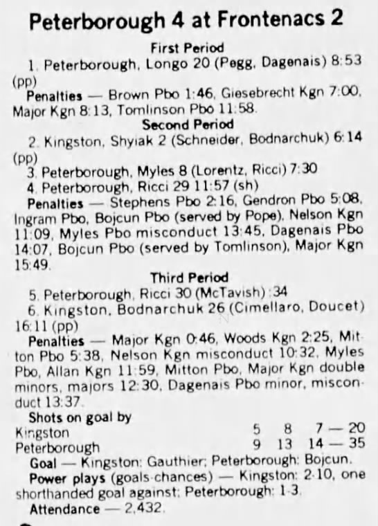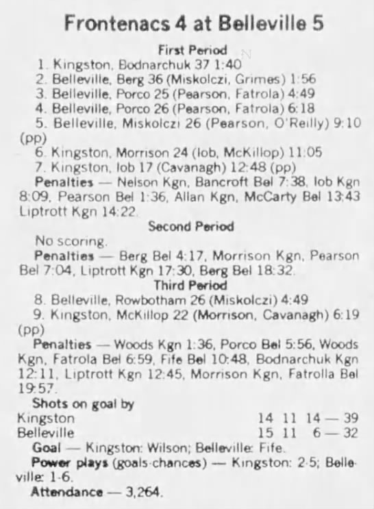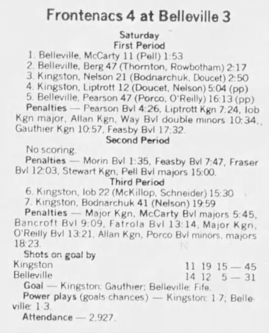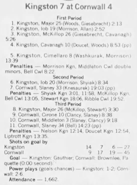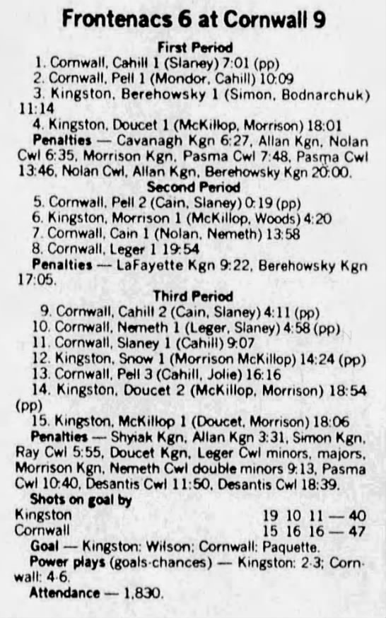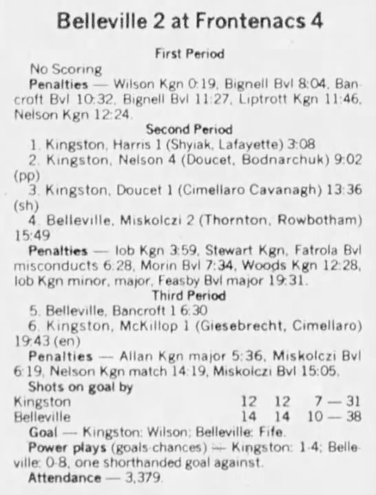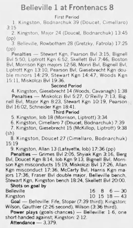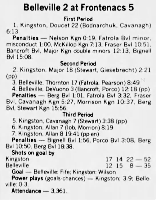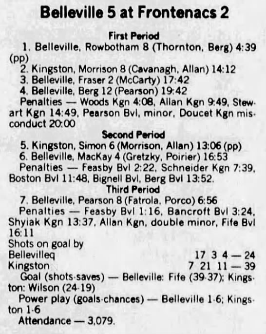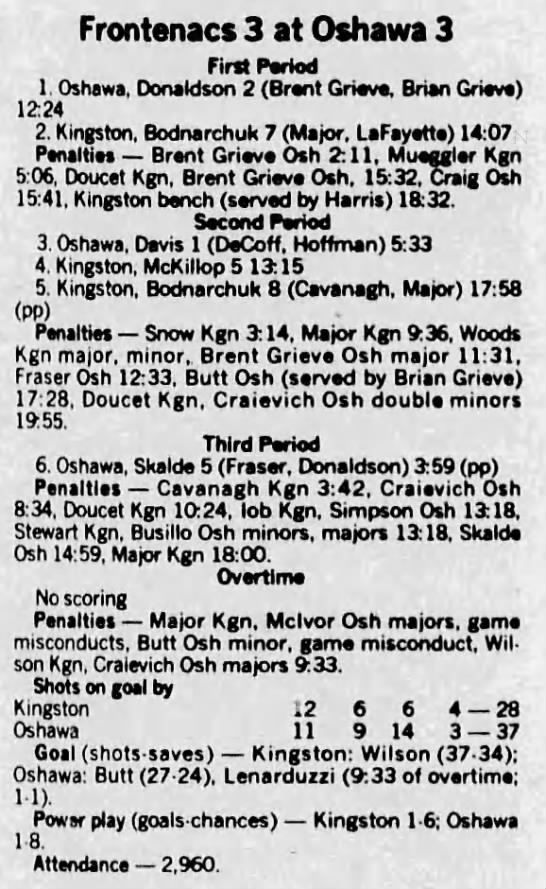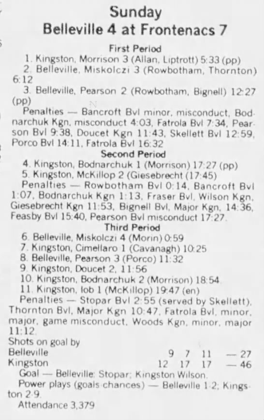 Here are the boxscores from the 1989-90 Kingston Frontenacs season. Every game from that season is here (73/73 boxscores). If you have any games that are missing from any other team or season, please send them my way.