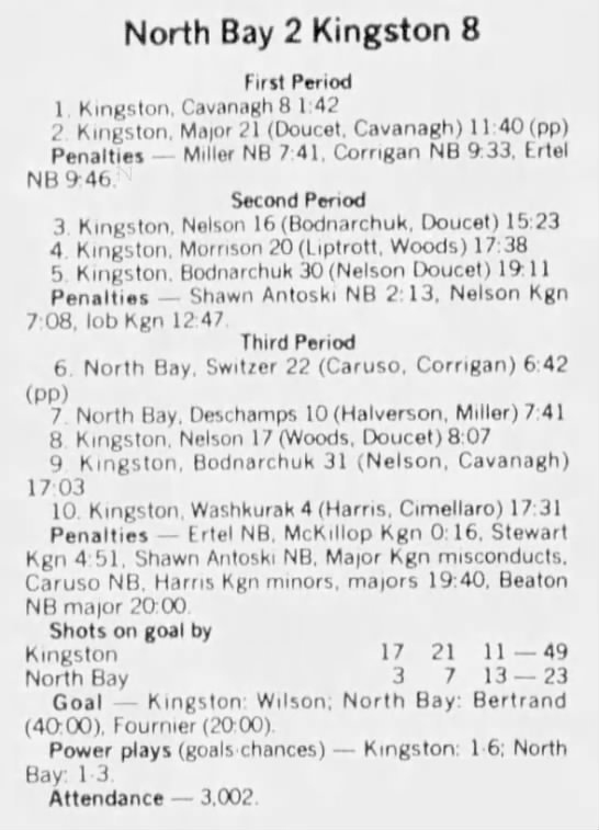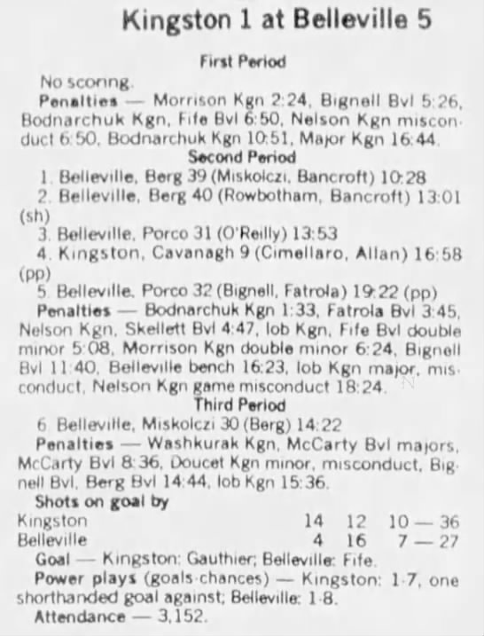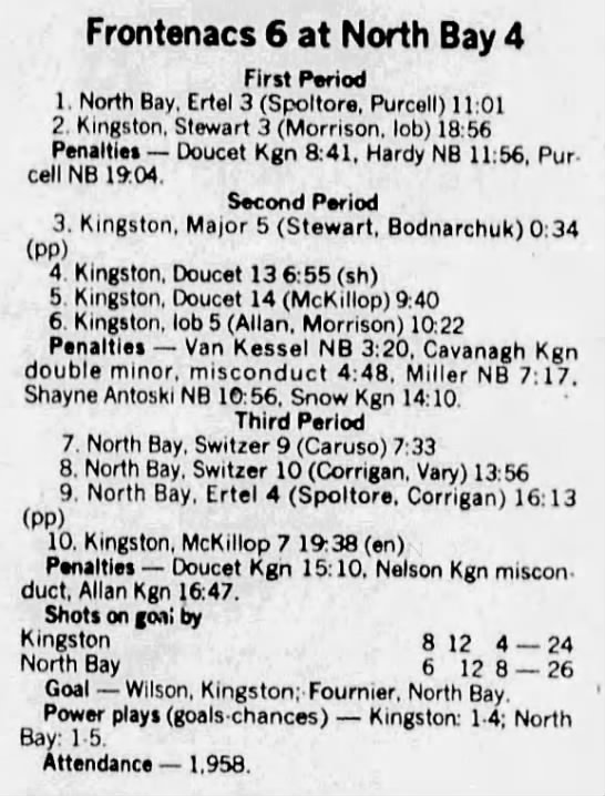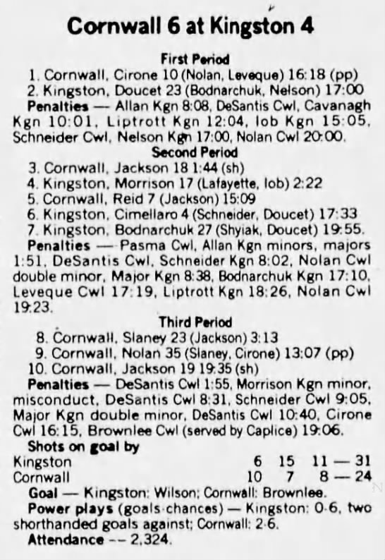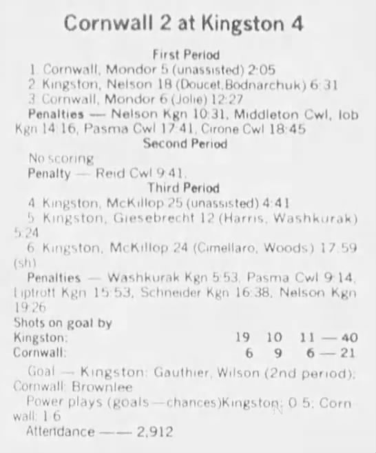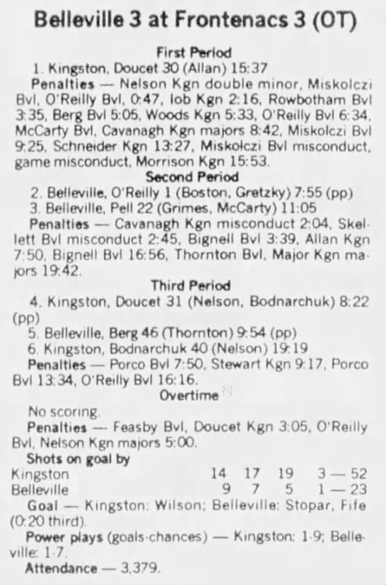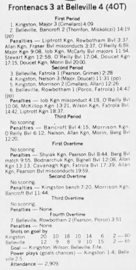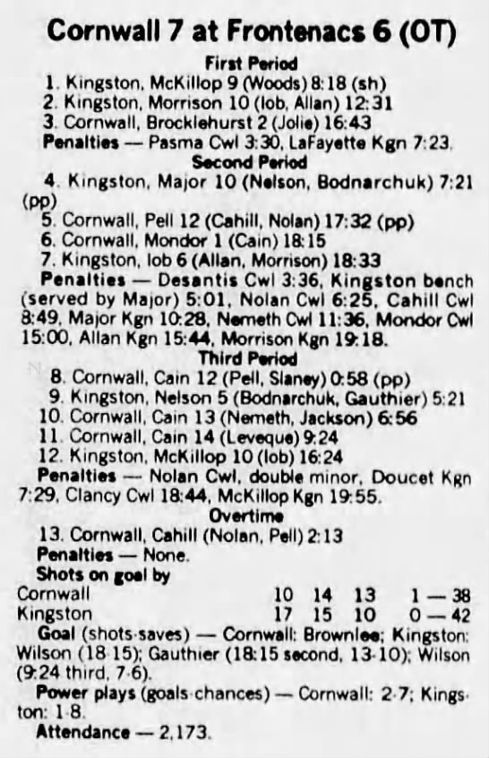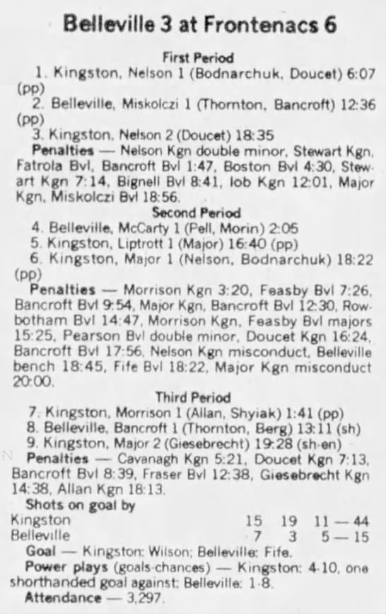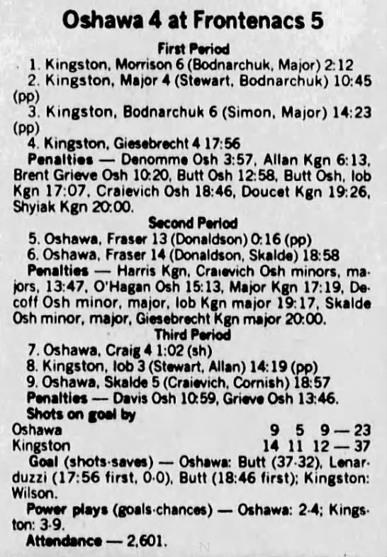 Here are the boxscores from the 1989-90 Kingston Frontenacs season. Every game from that season is here (73/73 boxscores). If you have any games that are missing from any other team or season, please send them my way.