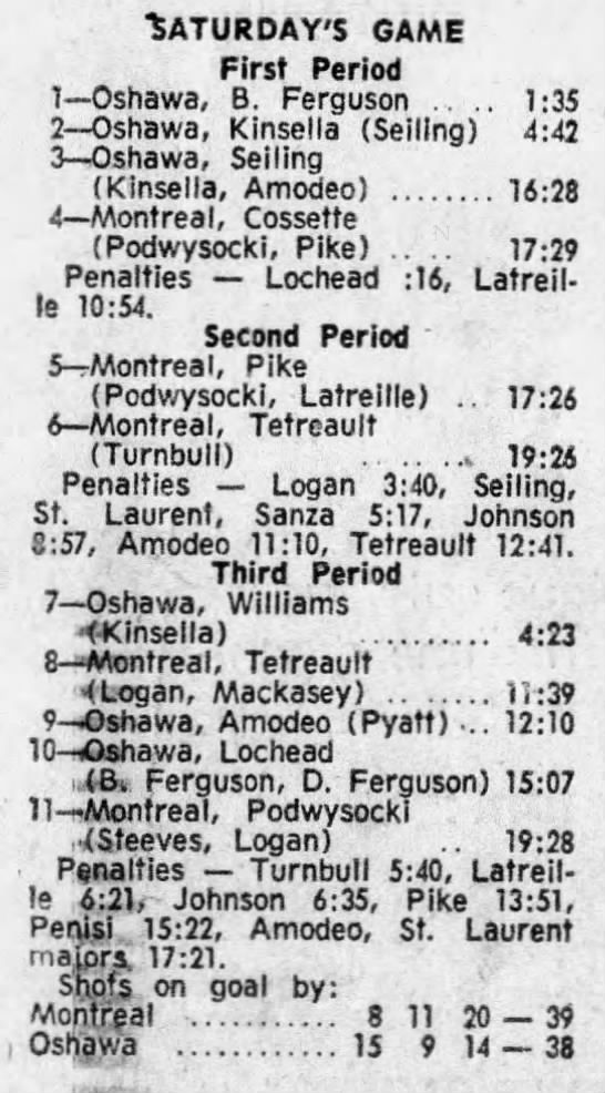 March 16 1972- Montreal @ Oshawa (7-1 Oshawa)