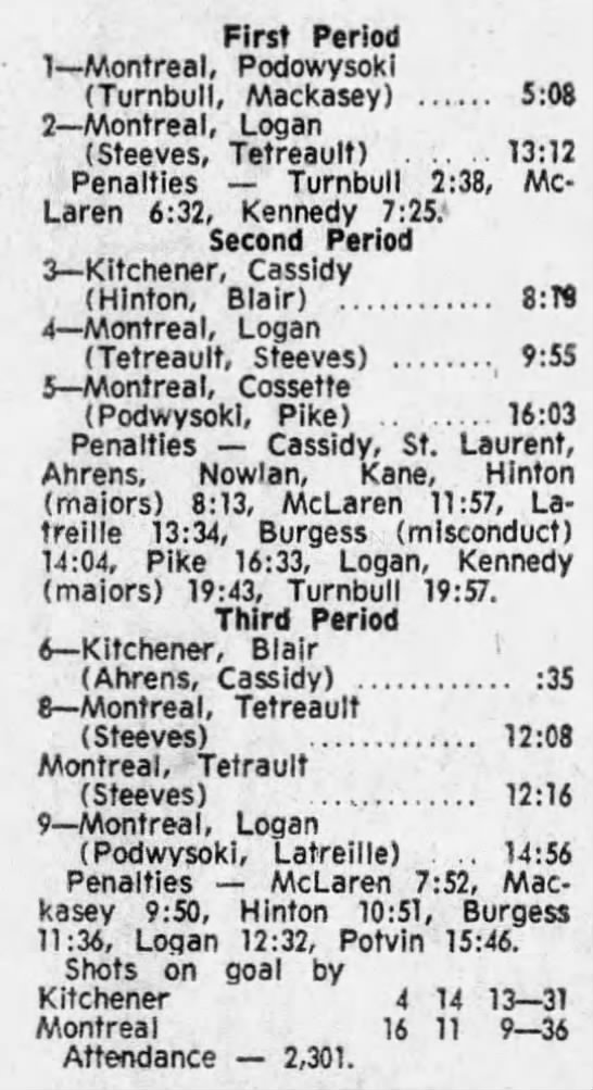 March 10 1972- Kitchener @ Montreal
