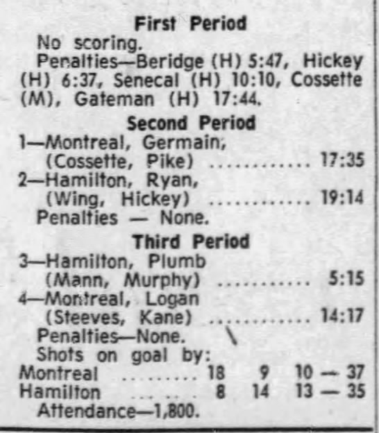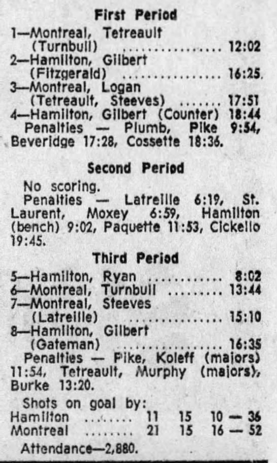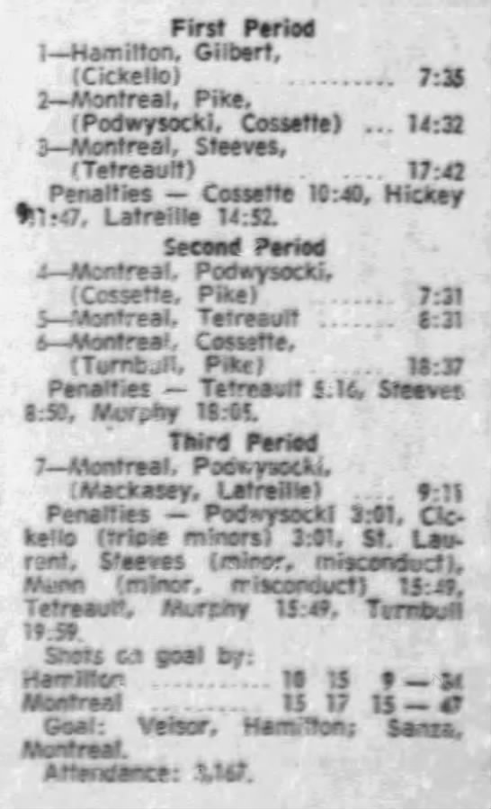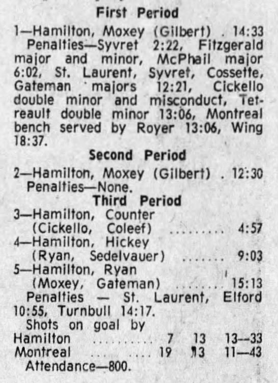 December 21 1971- Montreal @ Hamilton (6-4 Montreal)